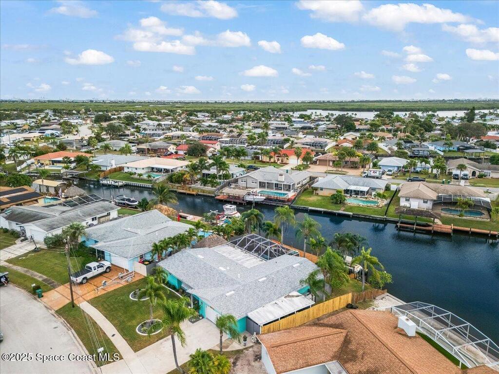 Experience the ultimate Florida Waterfront Lifestyle in this updated 4 BR, 2 BA home in Diana Shores. Truly a boaters dream. Enjoy the sunsets in the backyard which is an oasis designed for year round entertaining.. Features a large dock w/tiki hut and pool w/hot tub. Enjoy the Man Cave Tiki hut (newly thatched) on game day. This turnkey home features high-value renovations like: 2023 all new kitchen appliances, new luxury vinyl flooring throughout, exterior repainted, and new gas pool heater. 2024-new roof , hurricane proof garage door. 2025 fully Remodeled Master Bathroom and new stove in kitchen. Located minutes from shopping/dining and Port Canaveral and the Space Center. Come and enjoy your Waterfront Dream in this move-in ready gem in Merritt Island.