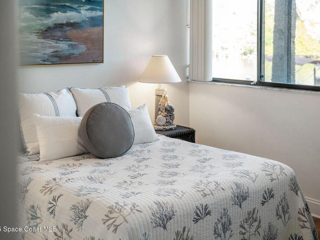 A FISHERMAN OR LADY ANGLER's DREAM CONDO!!! There is no better little slice of paradise than this turn-key 2/2 condo in Cape Canaveral's Northernmost boat-friendly condo community...Treasure Island Club Condos. Built in 1985, this 1200 sq ft 2/2 is ONE OF THE FEW TO HAVE A DEEDED BOAT SLIP, but -- even better -- it's within view of the unit's back patio, and at the base of the cove offering maximum protection from the wind. A fish cleaning station is just steps away from deeded slip #29. Additionally, this unit comes with a deeded covered parking space. The unit is beautiful with an updated kitchen, new paint, and floor-to-ceiling sliders to maximize the canal and cove views. Mother Nature abounds along the dock and as dolphin and manatees refer to this as home, too. 30-Day min rental up to 3 times per year. SUBJECT TO LEASE thru July 2026. All-Inclusive Monthly at $2600.