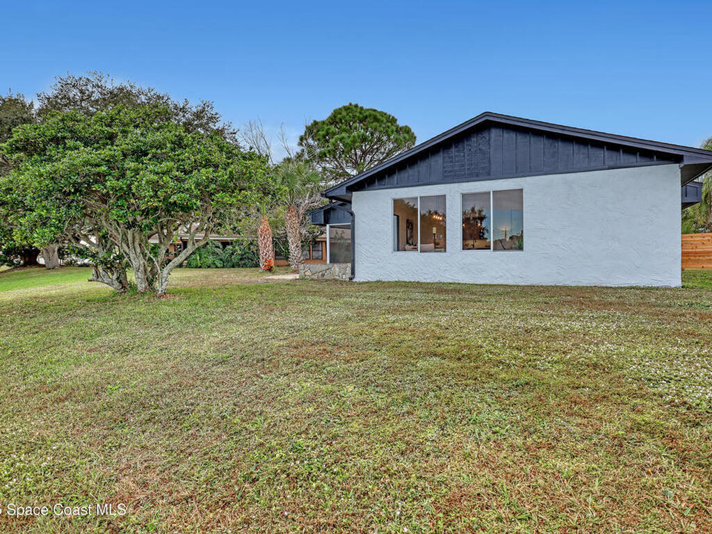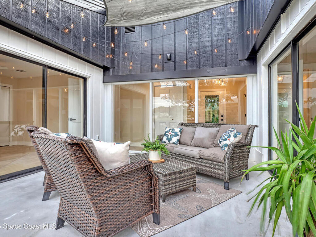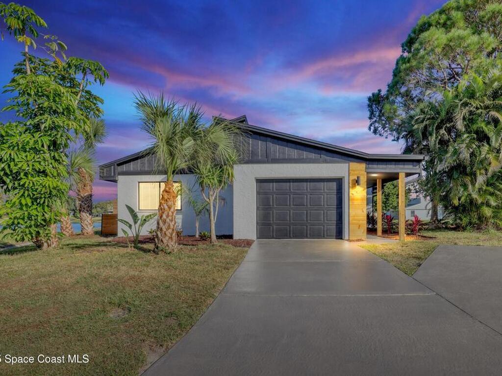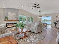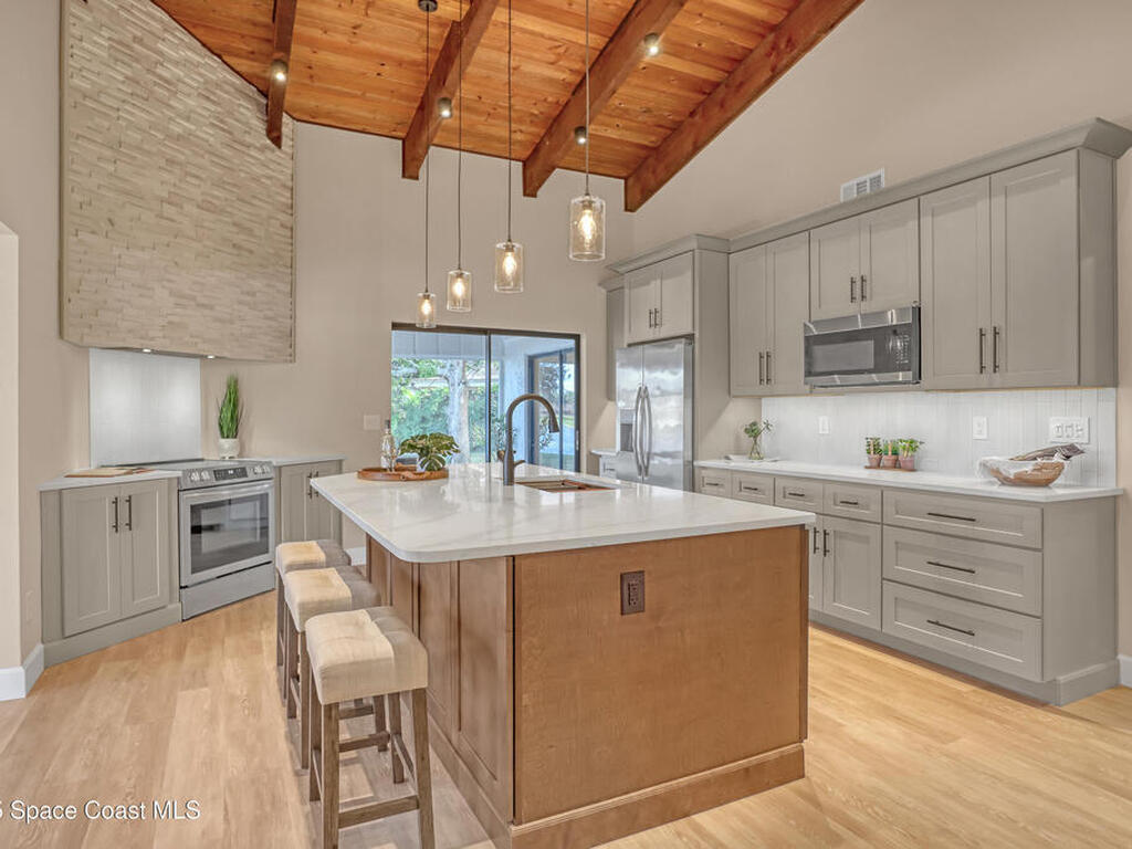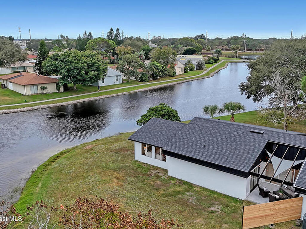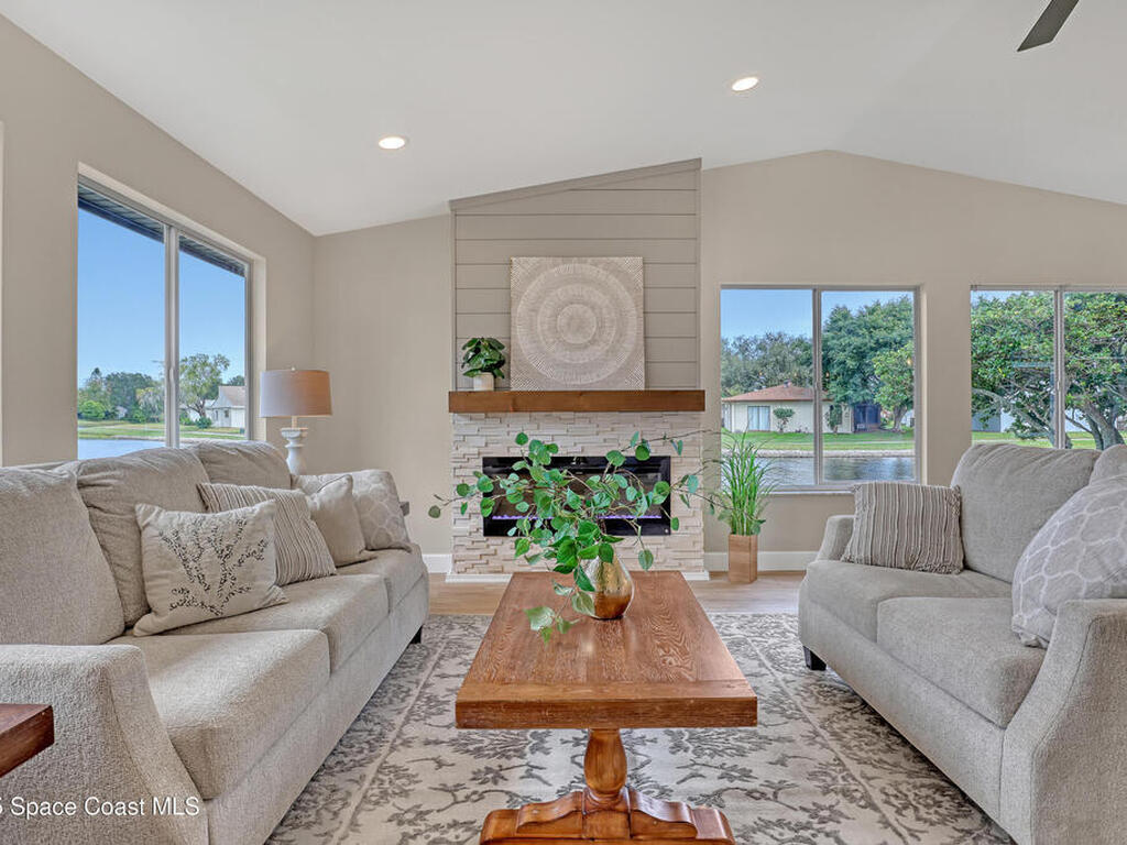 Tired of cookie-cutter Viera/Suntree homes?...then this house is for you! Filled with unique features. Everything is new, so it's like getting a brand new house in the heart of Suntree. Large cul-de-sac lot with wrap-around waterfront. Features an office/flex room. New luxury vinyl flooring & lighting throughout. Brand new kitchen with soaring 14' tall ceiling with exposed wood beams and T&G planks. Large quartz island with overhang, 42'' soft-close shaker cabinets, under-cabinet lighting, SS appliances, range hood, coffee corner, and tons of storage. Great room with 180 degree water views & new stone fireplace. Each guest room has their own slider door access to the private atrium that features a new concrete patio, sunshade, & overhead lighting. Both baths are all brand new with pebble tile showers, tile floors, & quartz countertop vanities. Indoor laundry room. All new int/ext doors. New systems: roof (2025), HWH (2025), AC (2019), & select AC ducting (2025). A-rated schools.