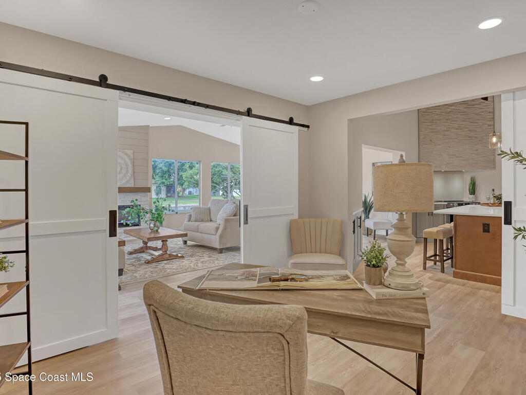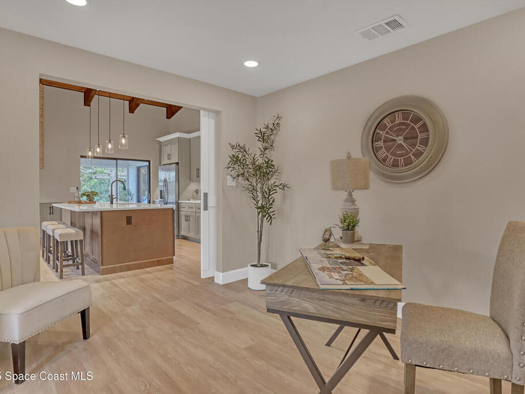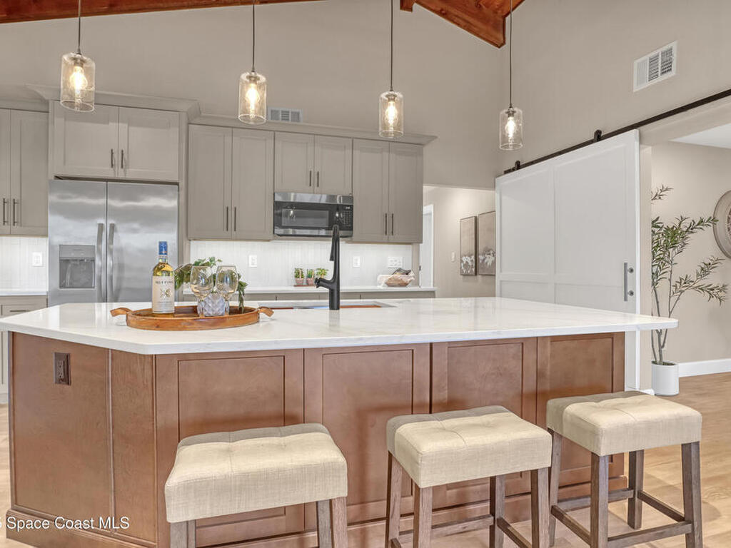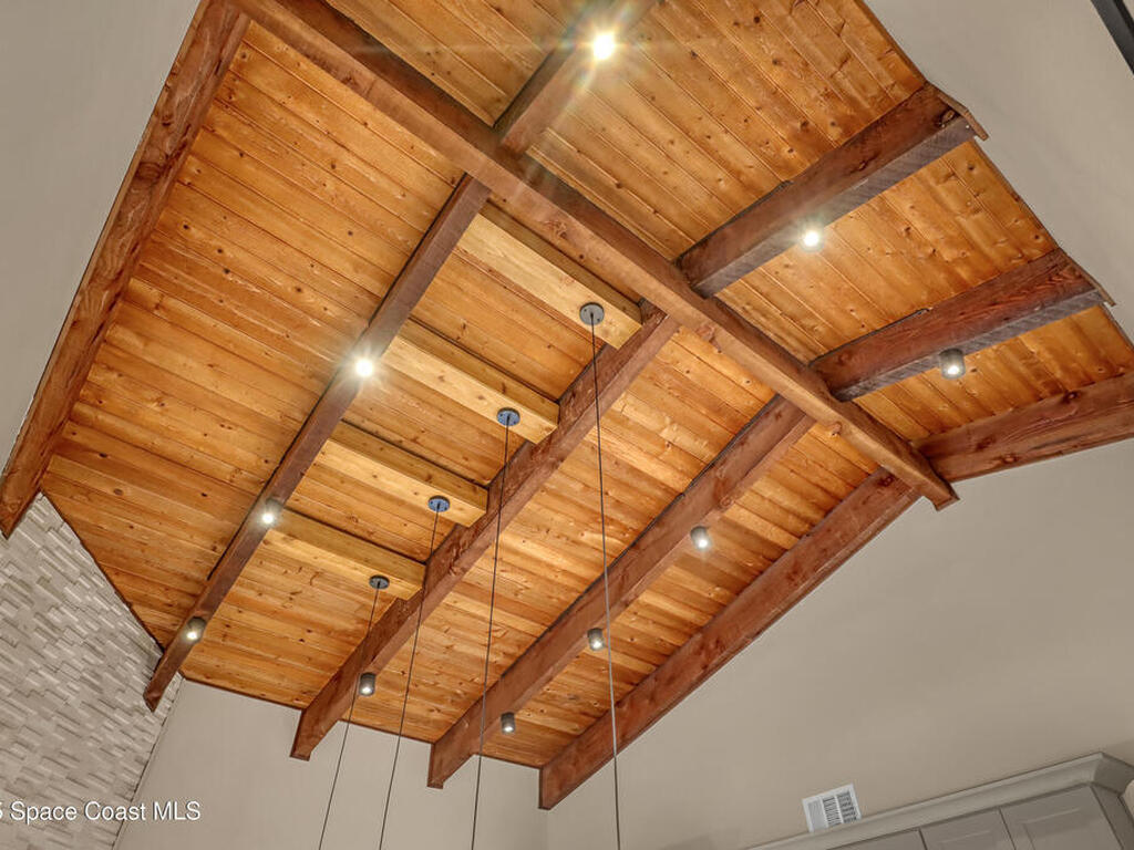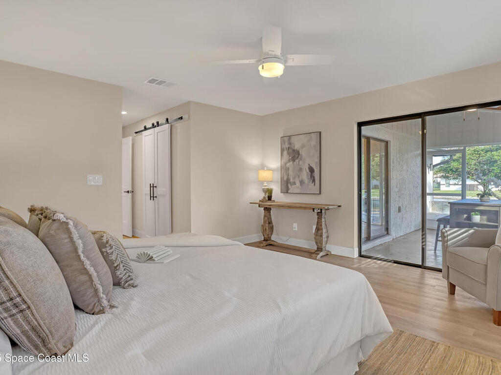 Tired of cookie-cutter Viera/Suntree homes?...then this house is for you! Filled with unique features. Everything is new, so it's like getting a brand new house in the heart of Suntree. Large cul-de-sac lot with wrap-around waterfront. Features an office/flex room. New luxury vinyl flooring & lighting throughout. Brand new kitchen with soaring 14' tall ceiling with exposed wood beams and T&G planks. Large quartz island with overhang, 42'' soft-close shaker cabinets, under-cabinet lighting, SS appliances, range hood, coffee corner, and tons of storage. Great room with 180 degree water views & new stone fireplace. Each guest room has their own slider door access to the private atrium that features a new concrete patio, sunshade, & overhead lighting. Both baths are all brand new with pebble tile showers, tile floors, & quartz countertop vanities. Indoor laundry room. All new int/ext doors. New systems: roof (2025), HWH (2025), AC (2019), & select AC ducting (2025). A-rated schools.