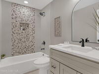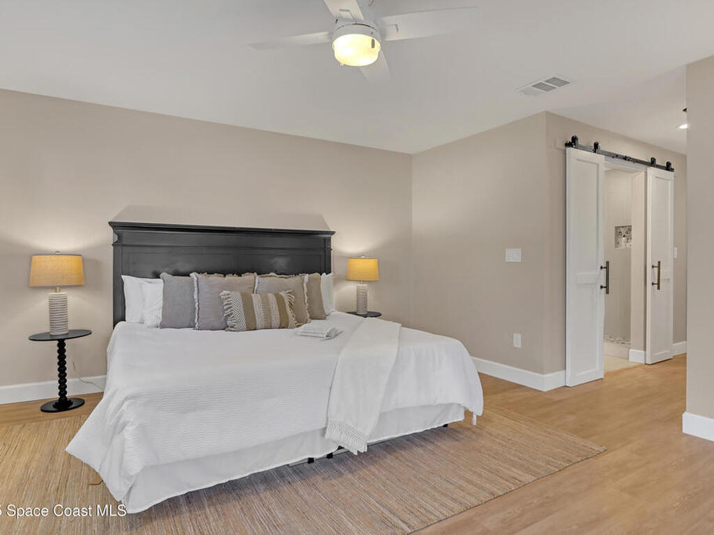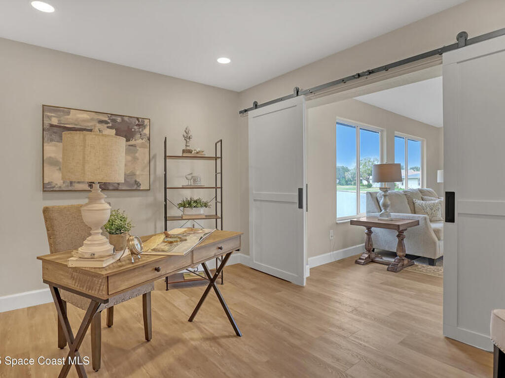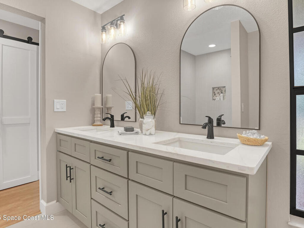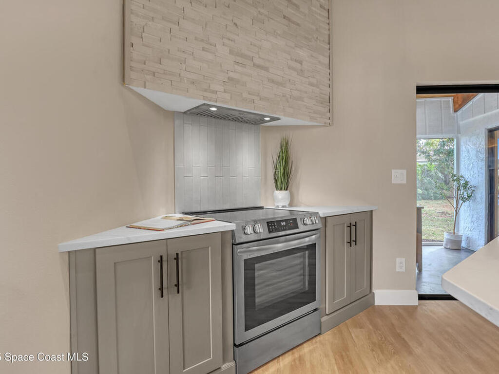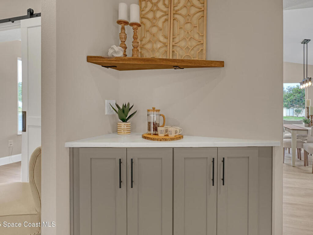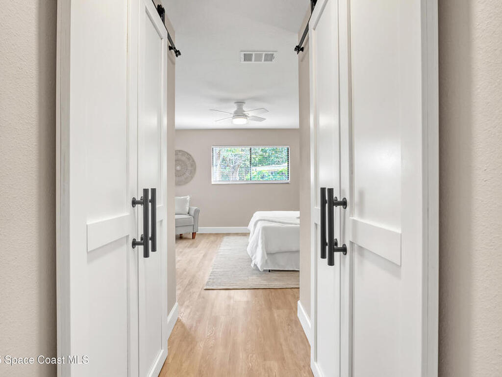 Tired of cookie-cutter Viera/Suntree homes?...then this house is for you! Filled with unique features. Everything is new, so it's like getting a brand new house in the heart of Suntree. Large cul-de-sac lot with wrap-around waterfront. Features an office/flex room. New luxury vinyl flooring & lighting throughout. Brand new kitchen with soaring 14' tall ceiling with exposed wood beams and T&G planks. Large quartz island with overhang, 42'' soft-close shaker cabinets, under-cabinet lighting, SS appliances, range hood, coffee corner, and tons of storage. Great room with 180 degree water views & new stone fireplace. Each guest room has their own slider door access to the private atrium that features a new concrete patio, sunshade, & overhead lighting. Both baths are all brand new with pebble tile showers, tile floors, & quartz countertop vanities. Indoor laundry room. All new int/ext doors. New systems: roof (2025), HWH (2025), AC (2019), & select AC ducting (2025). A-rated schools.