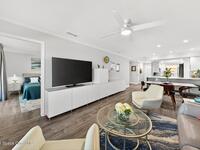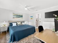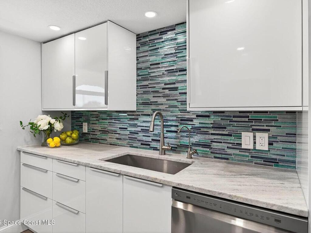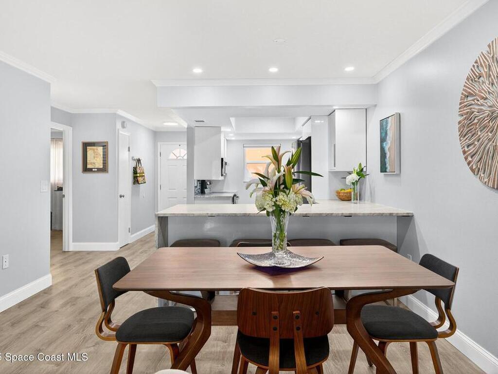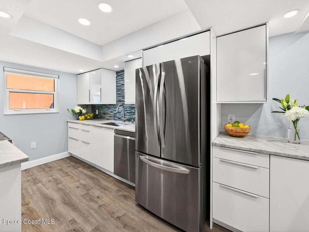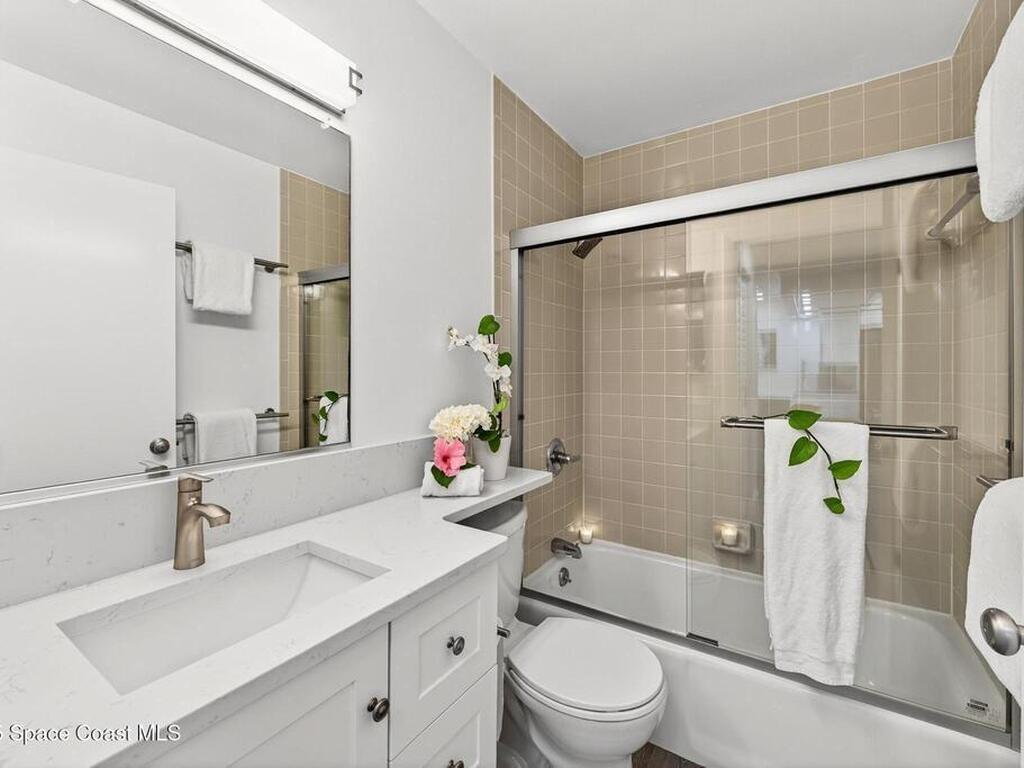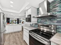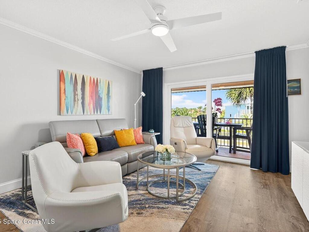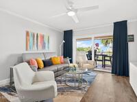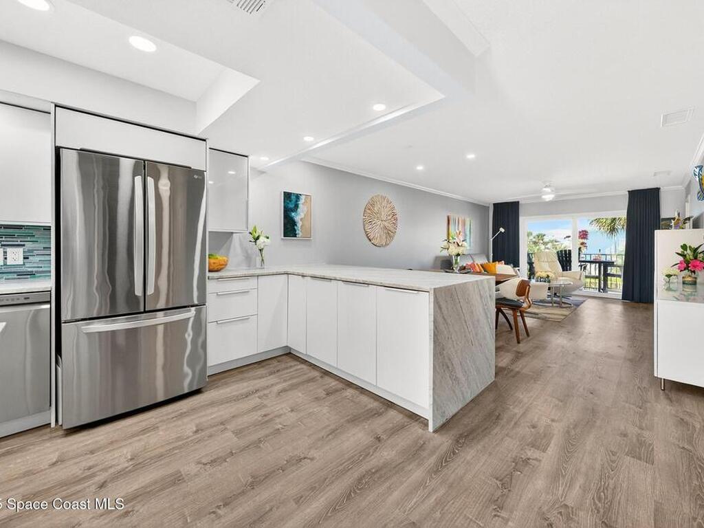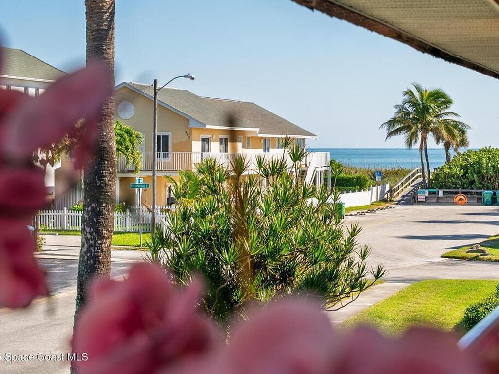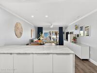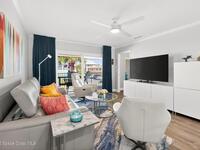 Experience the best of coastal living in this beautifully renovated 2-bedroom, 2-bathroom condo just steps from the beach. One of the few units in the community with a true ocean view from the balcony, this home offers the perfect blend of relaxation, style, and investment value. The modern renovation includes new uniform flooring, a fully updated kitchen with contemporary soft close cabinets, and an inviting island bar Natural light fills the open floor plan living area through new hurricane-impact sliders and windows, showcasing the coastal scenery while providing peace of mind. Both bedrooms are comfortably sized, and the updated bathrooms offer clean, modern finishes. With a monthly minimum rental policy, this property is ideal for both personal enjoyment or strong rental potential. For anyone seeking a move-in-ready beach retreat with options for part time or full time enjoyment, this modern day gem is ready to make memories for you!