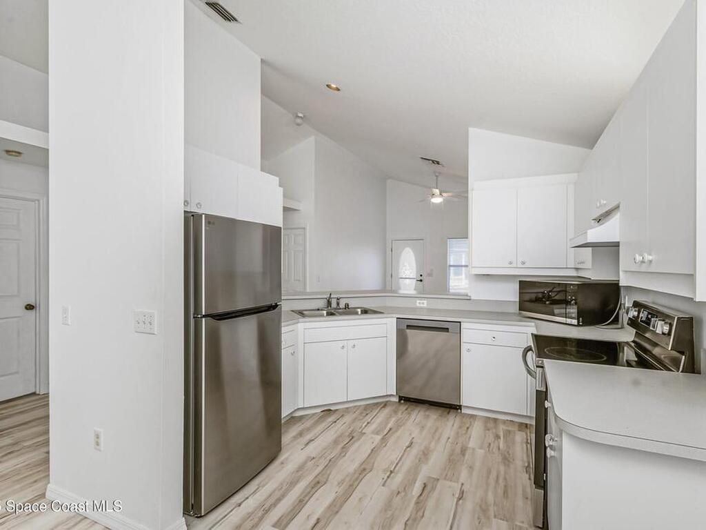 Discover charming cottage living in this delightful 2-bedroom, 2-bath, one-story home, perfectly designed for comfort & convenience. A welcoming front porch sets the tone, while a spacious rear porch offers the ideal spot to unwind. Inside, enjoy newer stainless steel appliances and easy-care flooring throughout the main living areas. New roof in 2023. A one-car garage adds practicality and extra storage. Situated in an incredibly convenient location close to shopping, schools, Florida Institute of Technology, medical, major employers and more. You're less than 10 minutes to the Indian River and beaches of the Atlantic. Quick access to I-95 makes daily life and weekend adventures a breeze. This inviting cottage blends charm, efficiency and an unbeatable Melbourne-area location - perfect for a first home, seasonal retreat or downsizing. Low maintenance combined with extremely low HOA fees make this an easy choice.