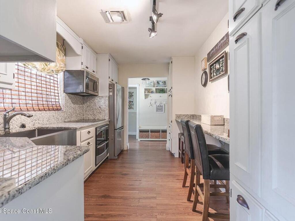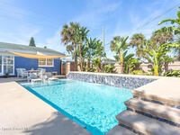 Charming Cocoa Beach Pool Home-3 bed/2 bath /1-car garageJust 2 blocks from the ocean. Enjoy a private saltwater pool with a sun shelf and water fall in a spacious fully fenced back yard designed for relaxing or entertaining. Inside, the home features a galley kitchen with granite counter tops, stainless steel appliances including a double oven. Formal dining room for family gatherings and additional Florida room offers plenty of natural light. Split plan with nice size primary bedroom featuring private bath and vaulted ceiling. The main living room is spacious featuring a beautiful stone, wood burning fireplace. This is the perfect beachside retreat- it has been successfully used for short term rentals and a personal vacation home. Great investment opportunity or full-time residence.