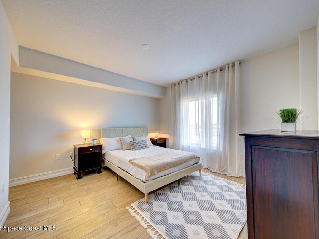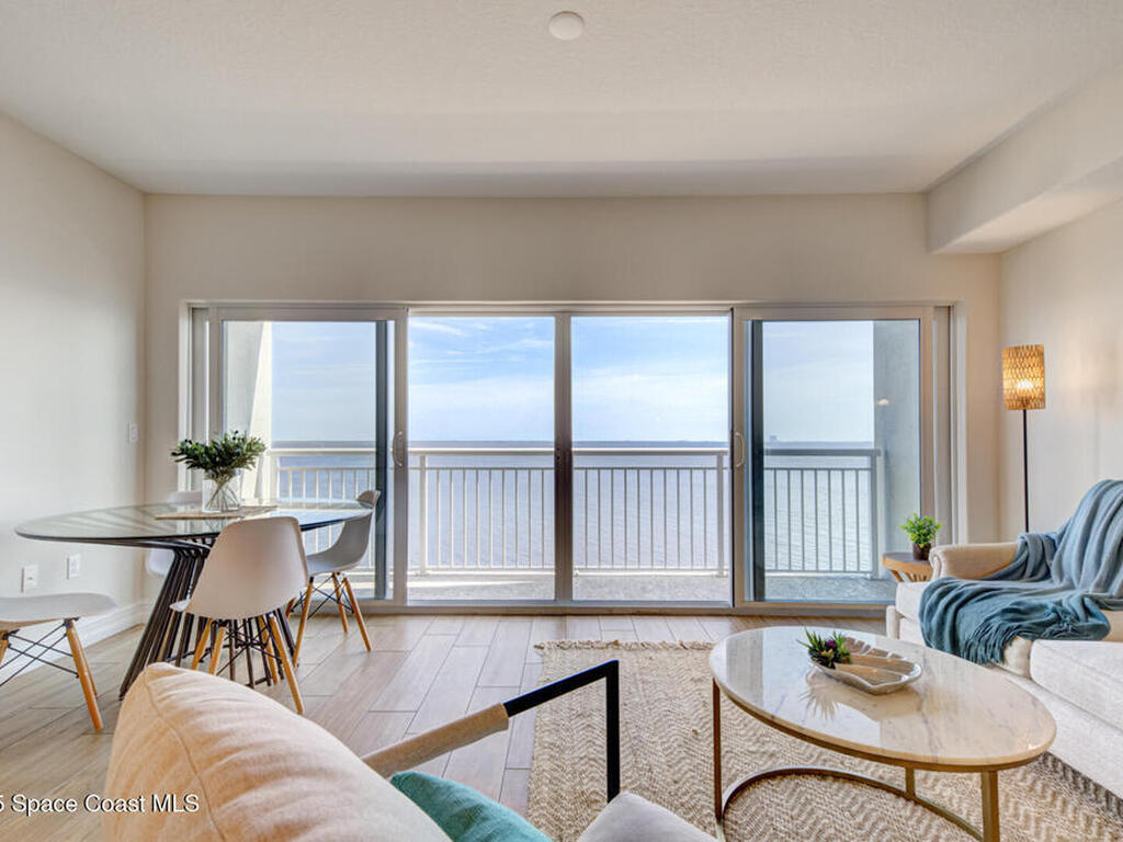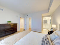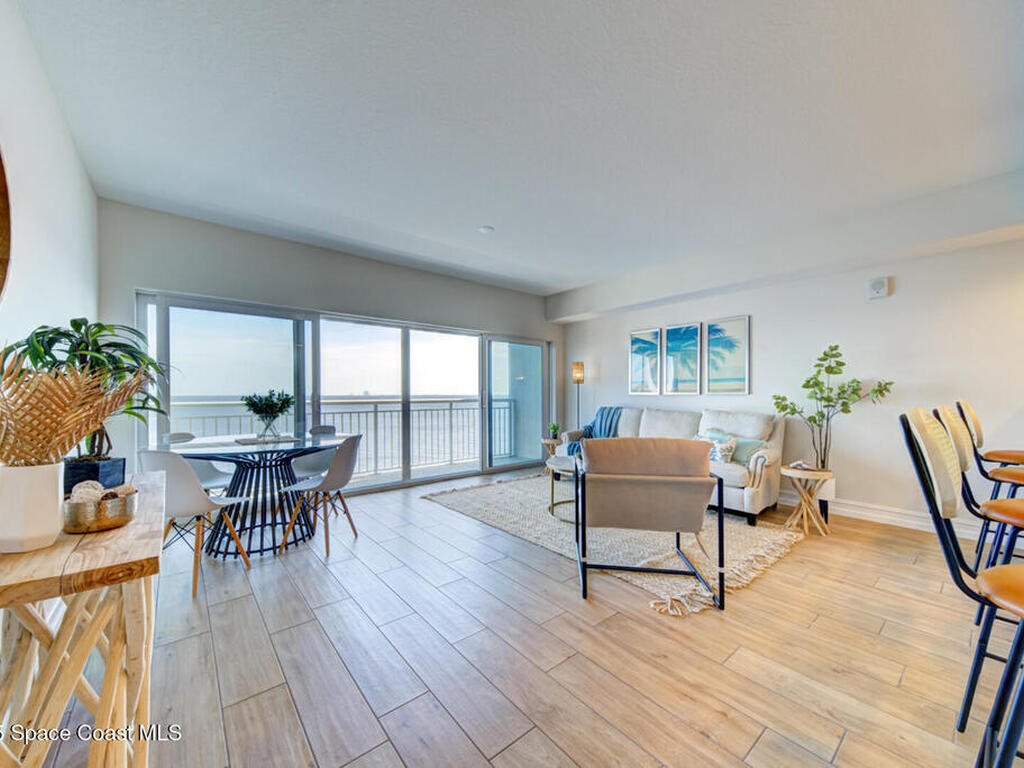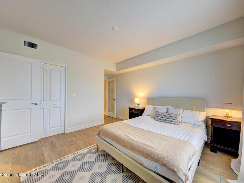Exquisite River View! Direct Waterfront, 2 Bedroom, 2 Bathroom, River Front Condo with 1201 living sqft on 5th Floor built in 2023 located in Titusville right off the banks of the Indian River. This property is almost directly across the river from Nasa's Launch Pad giving a spectacular view of Launches all from the comfort of it's living room or balcony. This condo has much to offer with its open floor plan, tons of natural lighting, spacious kitchen with bright white wooden cabinetry, quartz countertops, black & stainless steel appliances and breakfast bar, tile flooring throughout. In unit, laundry closet, washer and dryer included. Under the building is one assigned parking space, there are additional open parking spaces in front of the building. Association Amenities offer a Community Pool, Fitness Center, Club House, the association fees include Cable TV, Internet, Water, Trash, Sewer and pest control. This property is worth taking a look at!