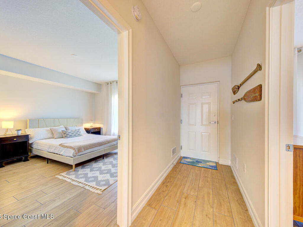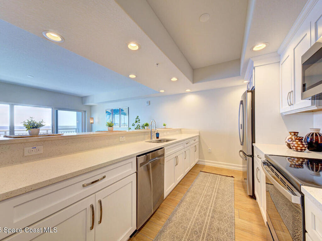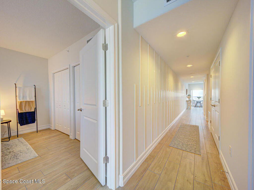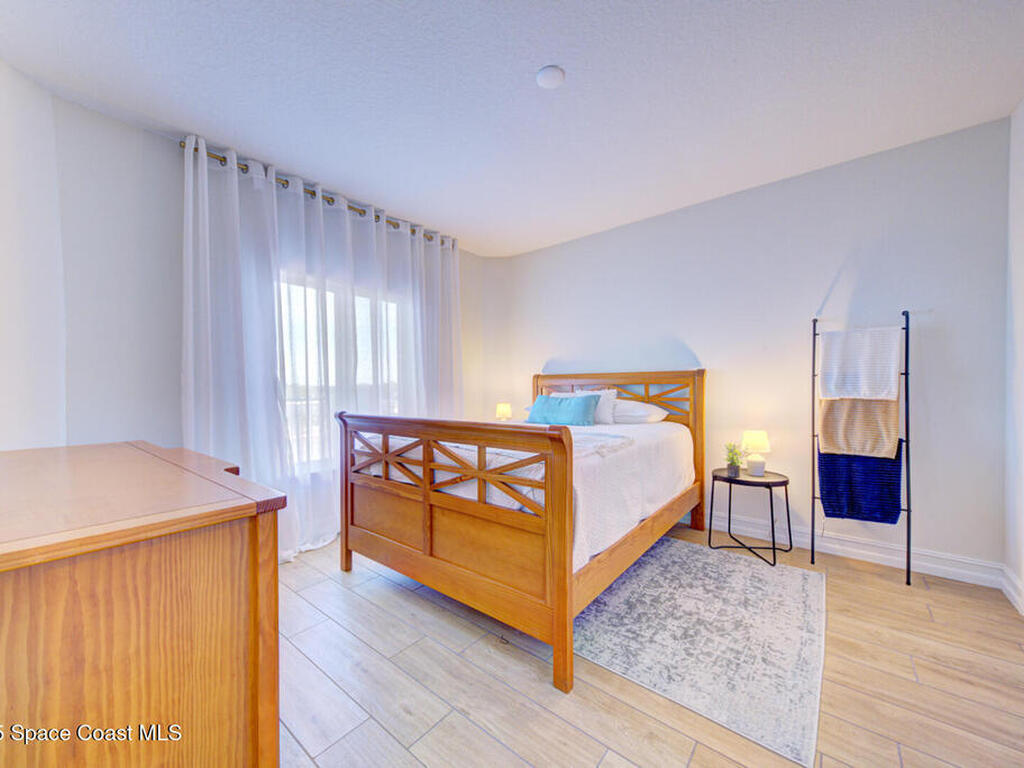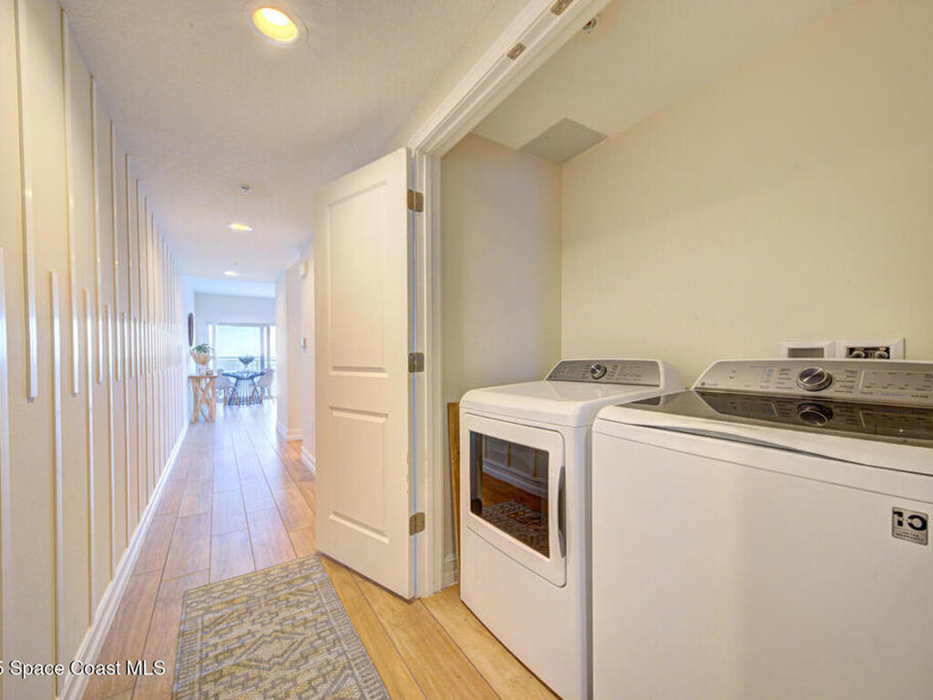 Exquisite River View! Direct Waterfront, 2 Bedroom, 2 Bathroom, River Front Condo with 1201 living sqft on 5th Floor built in 2023 located in Titusville right off the banks of the Indian River. This property is almost directly across the river from Nasa's Launch Pad giving a spectacular view of Launches all from the comfort of it's living room or balcony. This condo has much to offer with its open floor plan, tons of natural lighting, spacious kitchen with bright white wooden cabinetry, quartz countertops, black & stainless steel appliances and breakfast bar, tile flooring throughout. In unit, laundry closet, washer and dryer included. Under the building is one assigned parking space, there are additional open parking spaces in front of the building. Association Amenities offer a Community Pool, Fitness Center, Club House, the association fees include Cable TV, Internet, Water, Trash, Sewer and pest control. This property is worth taking a look at!