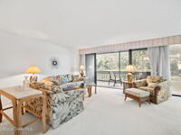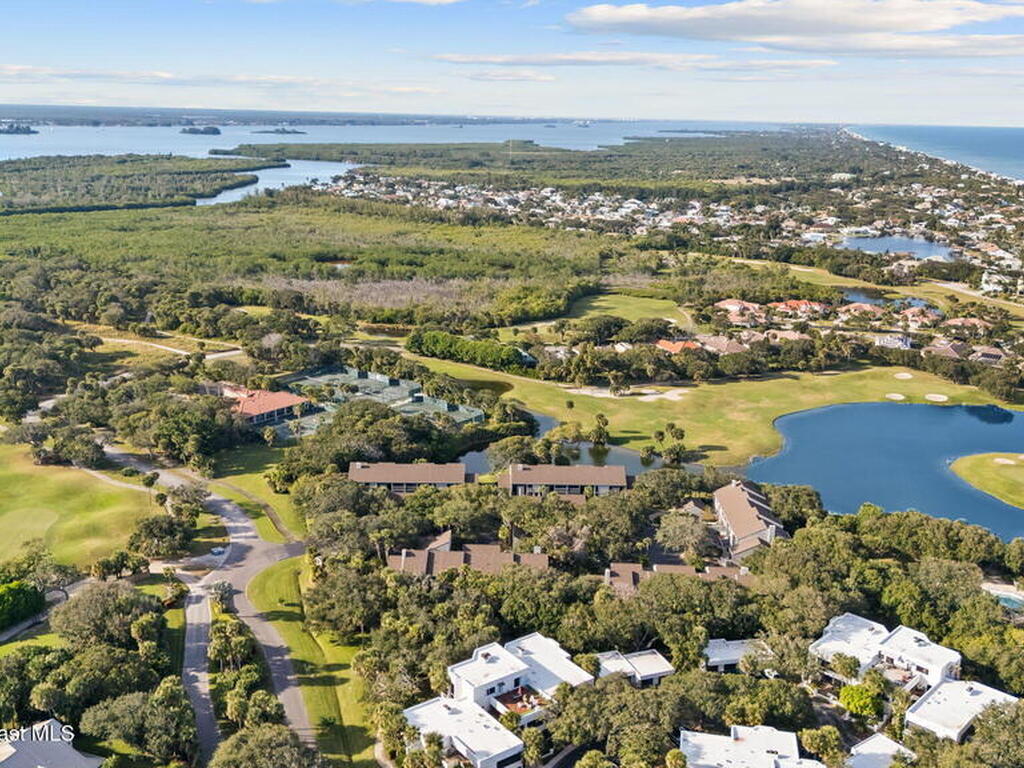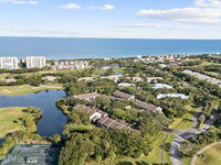 Enjoy nature at it's finest among the stately oaks and golf course right in your own back yard! Multiple patios and balconies (both screened and unscreened) capitalize on the park-like setting with exceptional views of the 7th fairway and serene lake. Inside you'll find spacious living and dining rooms, both with oversized sliders leading to screened patios. Just off the kitchen and breakfast nook a private courtyard connects the oversized 1 car garage with the residence. Upstairs are two bedrooms, each with their own bathroom. The generously sized primary suite has two closets and its own private balcony. Aquarina Beach & Country Club provides resort-style living at its best with world class amenities including a Beach Club with private beach access, RV & boat storage, dock and river access including a launch area for small boats, tennis and fitness center, golf club and newly renovated on-site restaurant, community center/club house with too many activities to mention.