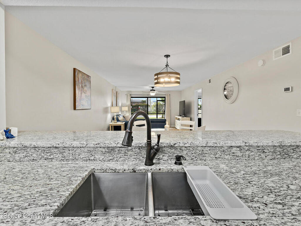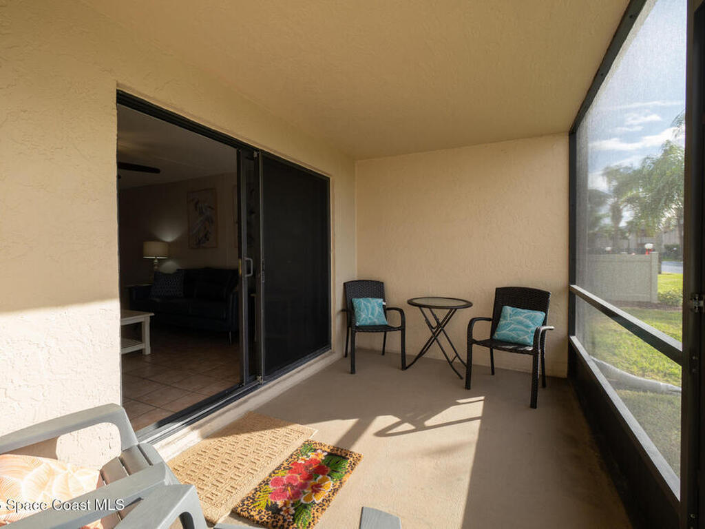 Welcome to your beachside paradise in Cocoa Beach! This beautifully updated 2-bed, 2-bath first-floor condo exudes serenity. The kitchen features white solid wood cabinets, granite countertops, and sleek black stainless appliances. Tile floors in the living area and luxury vinyl tile in bedrooms offer style and durability. Upgrades include impact glass windows, a newer A/C, new water heater, modern bifold doors, interior freshly painted, and new light fixtures. Relax in your screened-in porch and catch the coastal breeze. Amenities include a pool, hot tub, private beach access, shuffle board and tennis courts. Embrace the Florida lifestyle and make this Cocoa Beach condo your personal coastal haven!