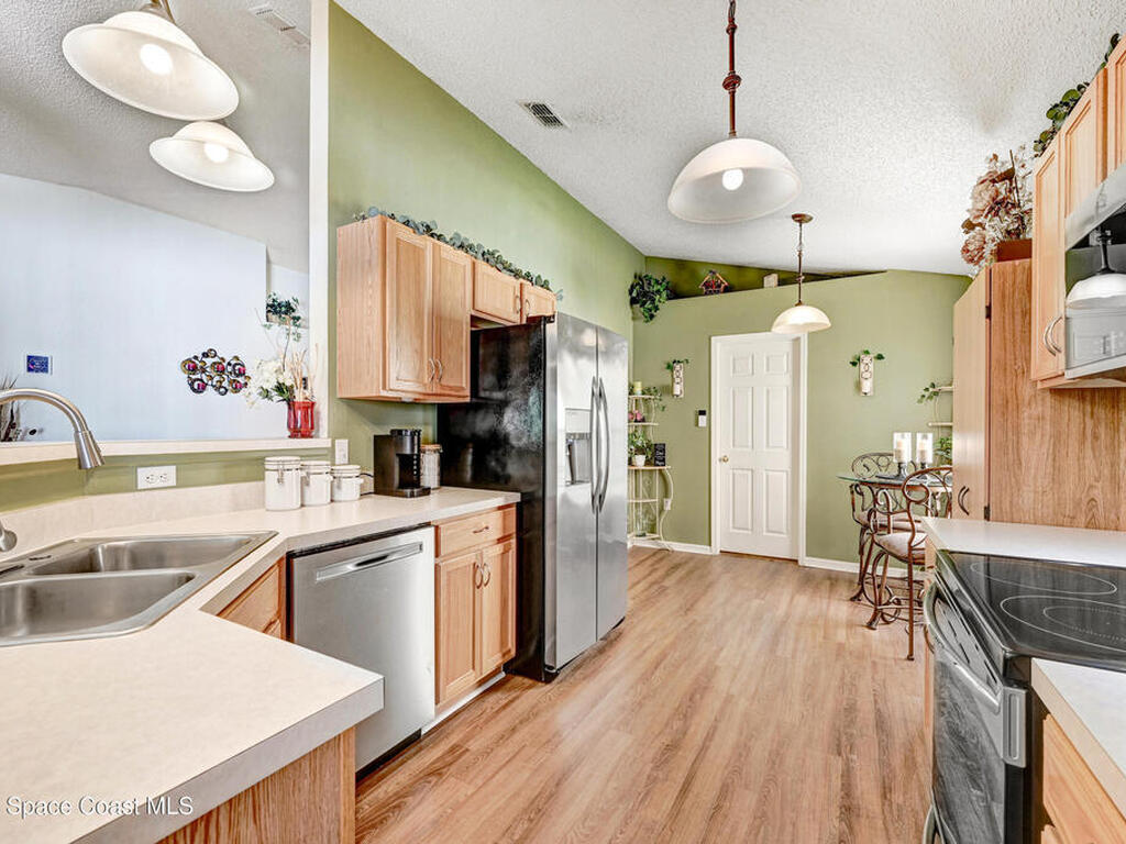 Welcome to this beautiful 3-bedroom, 2-bathroom home located in the highly sought-after Bridgewater at Bayside Lakes community. Boasting 1, 865 sq ft under air, this open-concept home offers comfort, style, and peace of mind. The spacious layout features vaulted ceilings and a modern kitchen equipped with stainless steel appliances, perfect for everyday living and entertaining, Enjoy Florida living from the screened-in lanai, or take advantage of the 2-year-old roof, block construction, and included hurricane panels for added safety and durability. The 2-car garage provides ample storage and convenience.This gated community offers exceptional amenities including two resort-style pools, a clubhouse, tennis and basketball courts, fitness center, and RV storage. The low HOA fee of $153/month includes lawn care, making maintenance a breeze. Ideally located just minutes from shopping, dining, and everything you need.Don't miss your chance to live in this vibrant and secure neighborhood!!