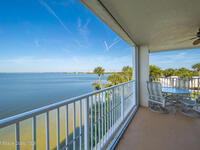 Experience LUXURY RIVERSIDE LIVING in this stunning 4th floor unit at Solana on the River. This spacious 3 bed, 2 bath residence offers spectacular PANORAMIC VIEWS of the Banana River, with cruise ships from Port Canaveral visible on the horizon. The open floor plan creates an airy, inviting atmosphere, complemented by a large kitchen and two dining areas. Enjoy abundant natural light from oversized windows throughout. Nearly every room in this exceptional unit offers breathtaking river views! Relax and unwind on your WRAPAROUND PRIVATE BALCONY PATIO, taking in the unforgettable sunsets. Enjoy the best of coastal living with the beach only minutes away. Residents benefit from RESORT-STYLE AMENITIES including a pool, spa, and tennis courts. Storm shutters and a secure underground garage with storage provides convenience and piece of mind. This premium END-UNIT location offers both privacy and unobstructed views in one of Cape Canaveral's most desirable waterfront communities!