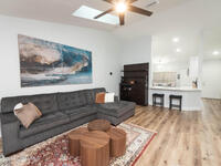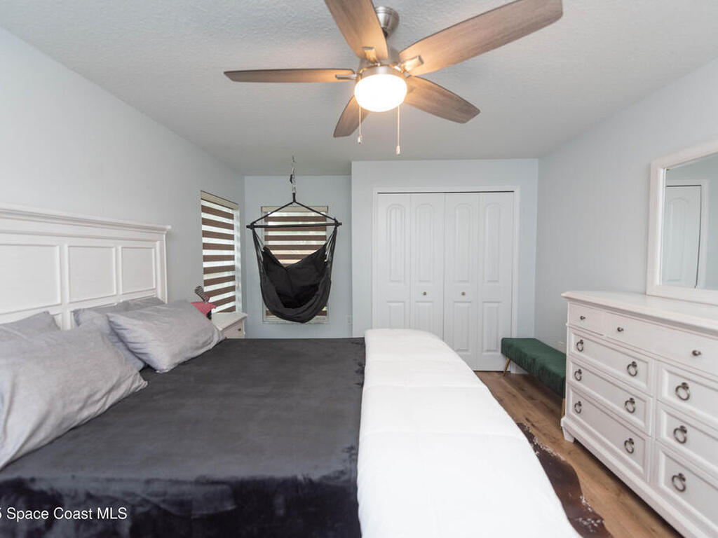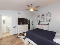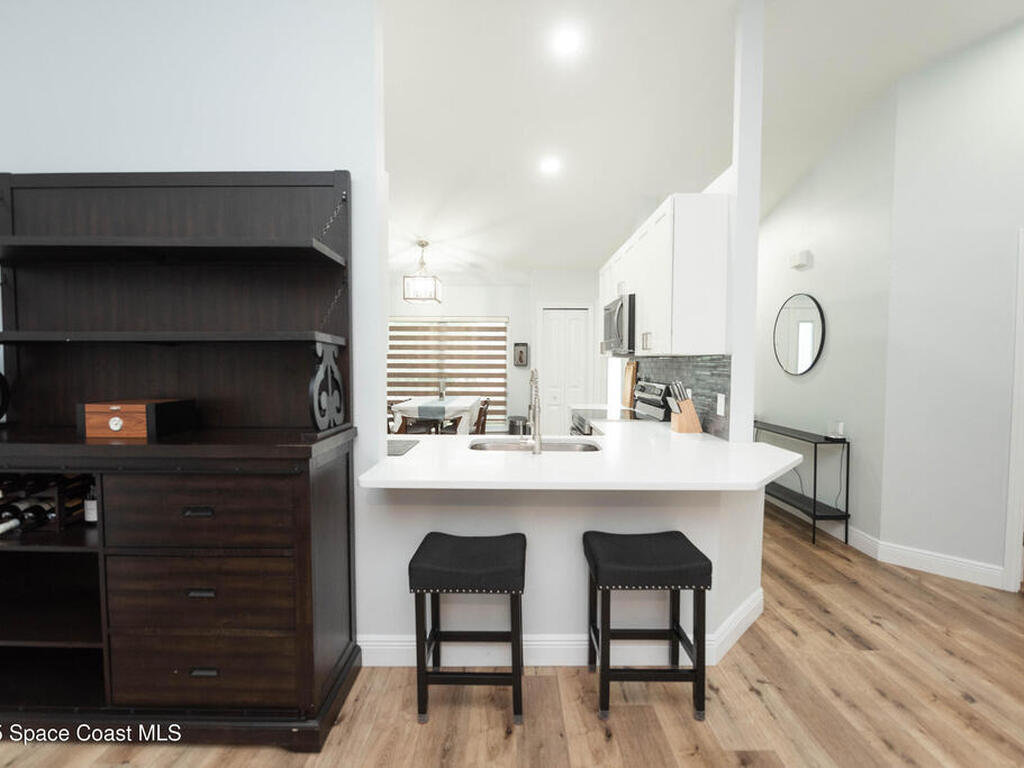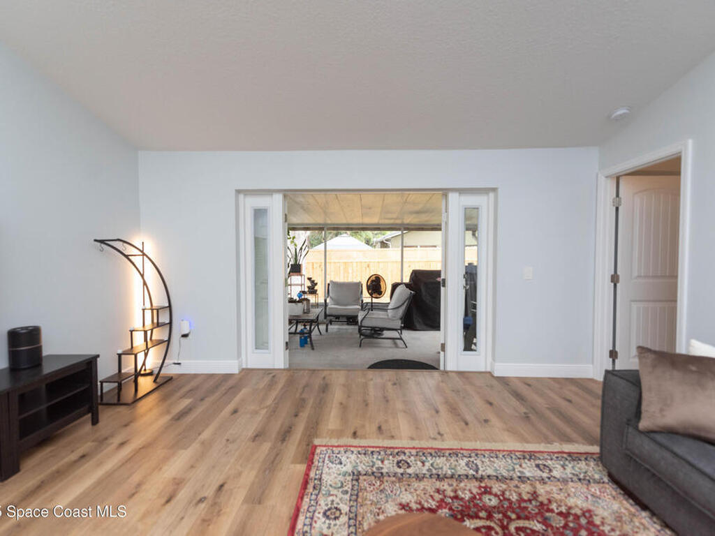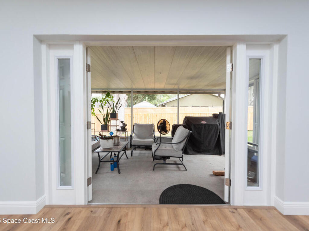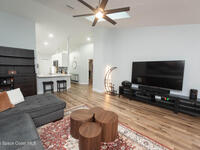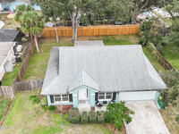 Beautifully updated 3-bed, 2-bath home on a 0.23-acre lot with a fenced yard, mature trees, and a long driveway that fits up to six vehicles. Inside features a bright and welcoming layout with a split floorpan, vaulted ceilings in the living room and primary suite, two new impact-glass skylights in the living room, and wood-look luxury vinyl plank flooring throughout. Updated kitchen and baths provide modern finishes and style, plus you'll find ceiling fans in every bedroom. Enjoy a screened porch and paver grilling pad for outdoor living. The 2 car garage includes an EV charger, and the home has an air filtration system and EcoBee thermostat for energy efficiency and comfort. Conveniently located near Orlando, Kennedy Space Center, Cocoa Beach, and Port Canaveral, but also tucked in a quiet neighborhood with a large park and ATV trails within walking distance. Move-in ready and perfectly positioned for work, recreation, and adventure.