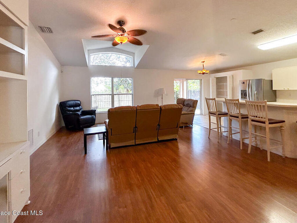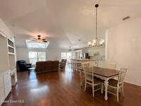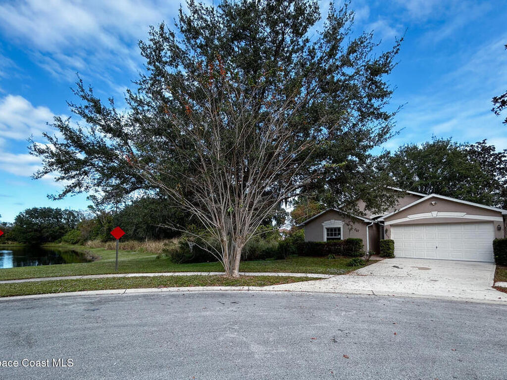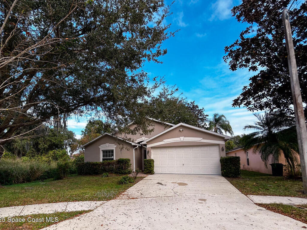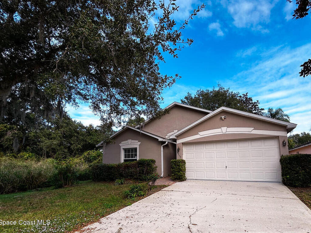 This CBS 3-bed, 2-bath home with a 2-car garage sits at the end of a quiet cul-de-sac and offers a rare blend of privacy, space, and natural surroundings, bordered by an HOA-maintained pond and a lush conservation area. Inside, vaulted ceilings and open living spaces create an airy feel, with a kitchen that flows easily into the dining and living areas--an ideal layout ready for your personal updates. The split floor plan features a generous primary suite with dual sinks, a soaking tub, and a separate shower, while the additional beds offer versatility for guests, family, or office space. The backyard includes mature shade trees and plenty of room to enjoy the peaceful setting. Convenient to I-95, beaches, shopping, dining, and Kennedy Space Center, this CBS home needs some TLC but holds incredible potential in a highly desirable location.