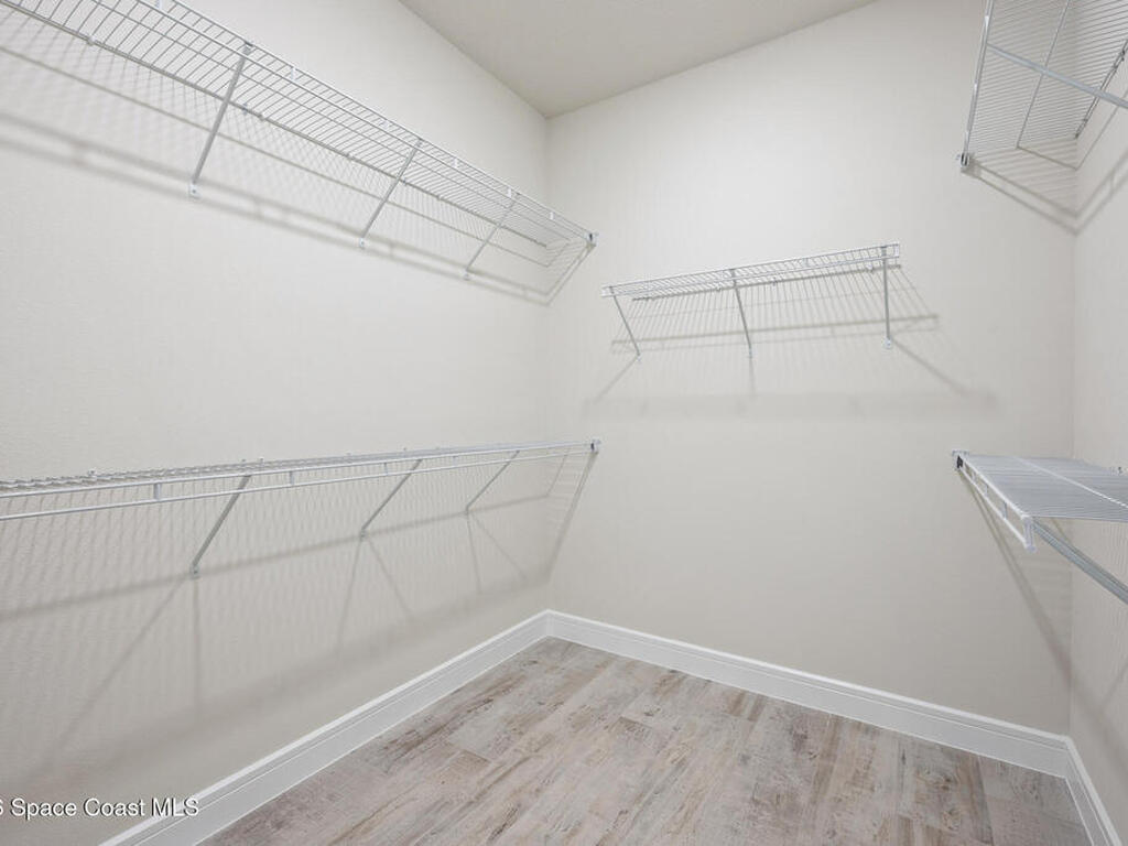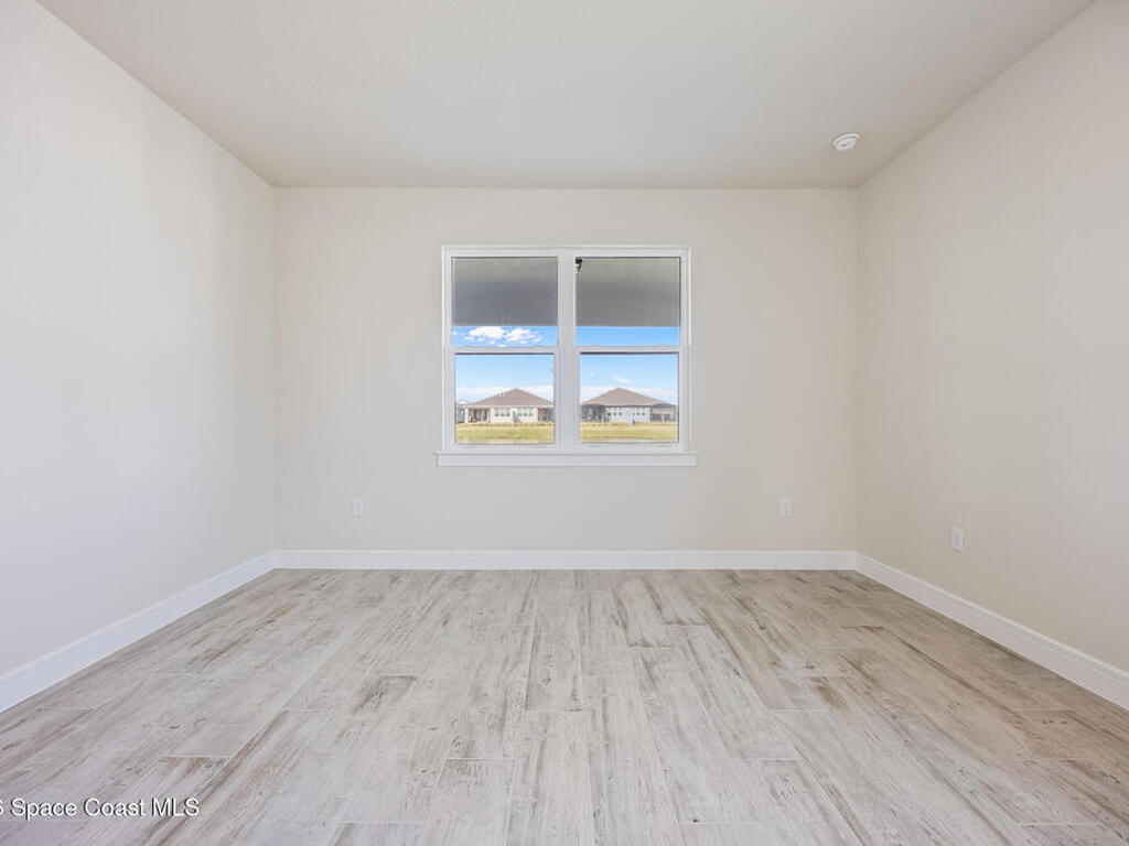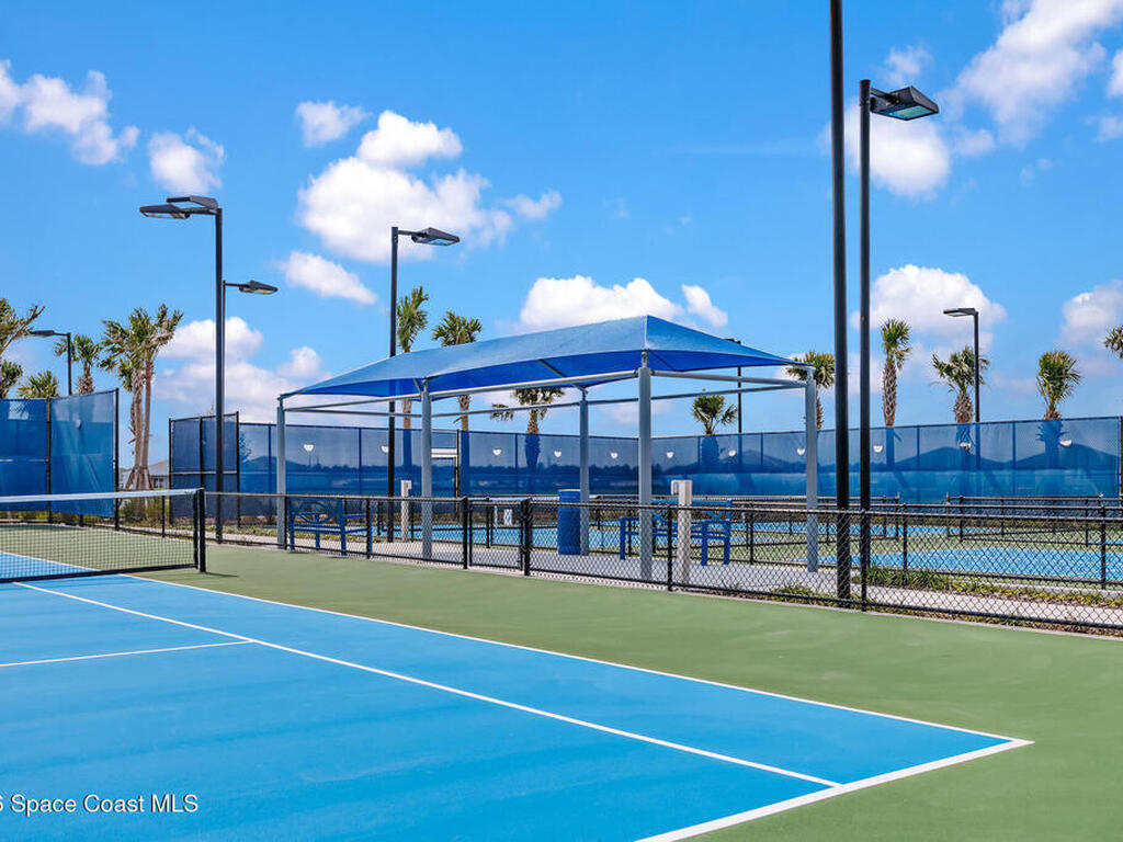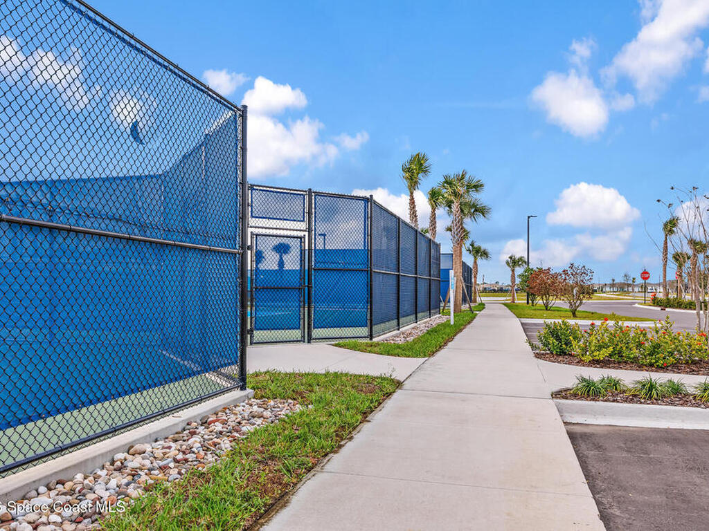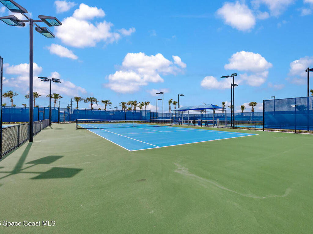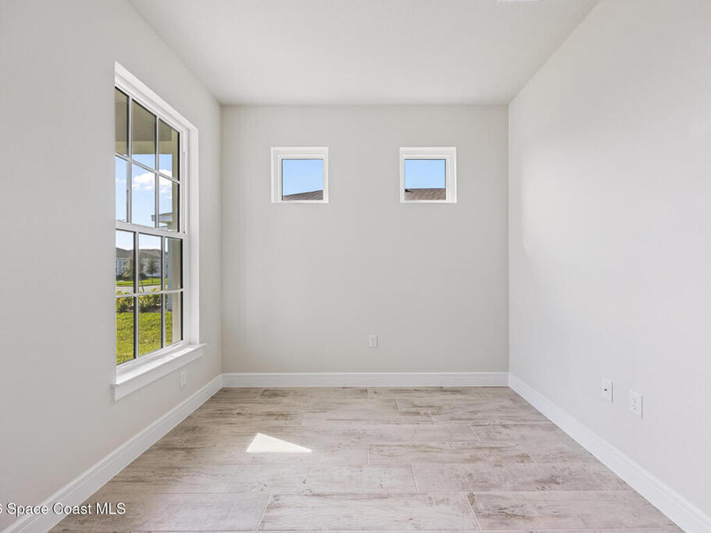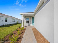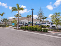 Brand New home never lived in!! Amazing upgrades, hurricane rated impact windows/doors, located on a pond with back porch facing North for beautiful Launch views! Built and finished December 2025, this is a 2 bedroom 2 bathroom home with a front office that could be turned into a 3rd bedroom that would fit a twin bed or Murphy bed. Porcelain (wood look) tile throughout the home. There are 2 showers and no baths in home. This Contour model has the extended living area giving more room for the dining room area and larger couch sectional or larger living room set! All landscaping and lawn care is covered in your HOA fees. You pay $840 a year towards your restaurant bill in the clubhouse. This encourages residents to socialize and make friends and what makes this community more unique and stand apart from other local 55+ communities. You have Publix and Viera Hospital within 2 miles of your home!