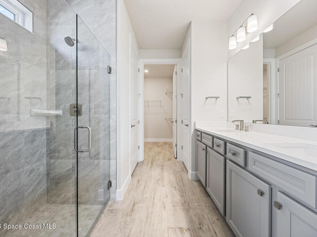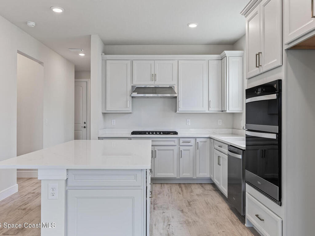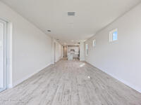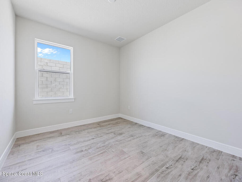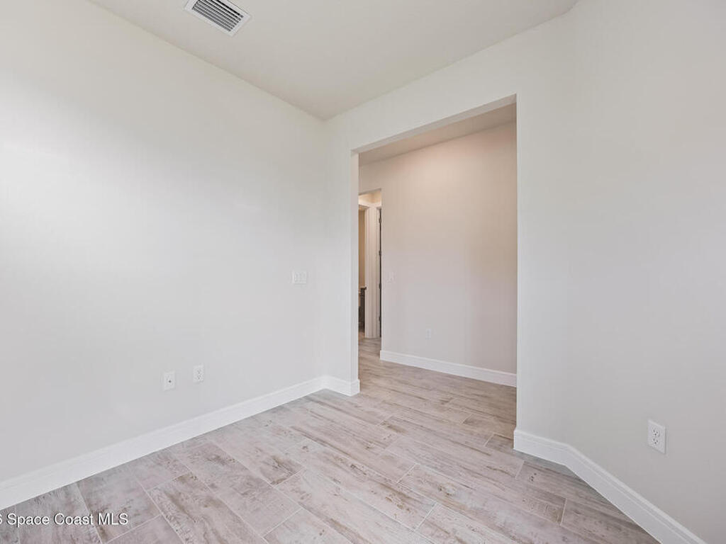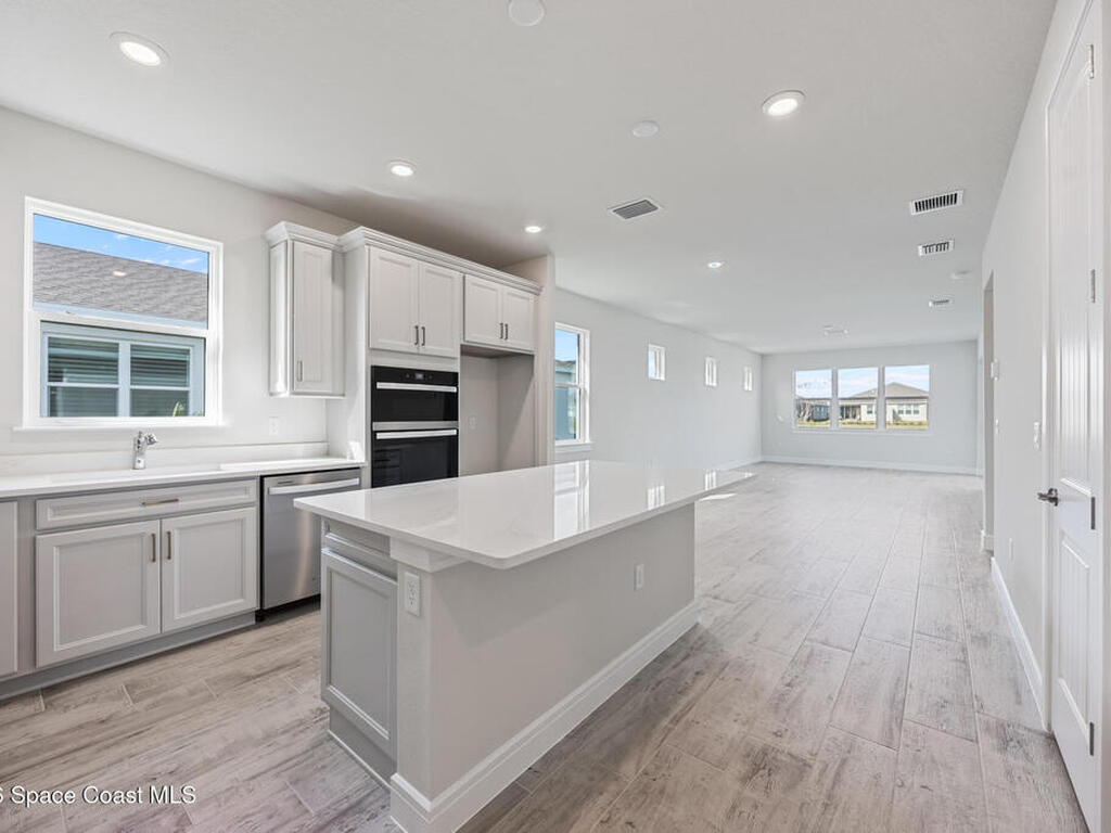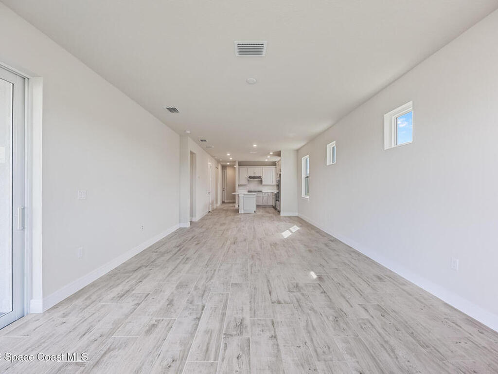 Brand New home never lived in!! Amazing upgrades, hurricane rated impact windows/doors, located on a pond with back porch facing North for beautiful Launch views! Built and finished December 2025, this is a 2 bedroom 2 bathroom home with a front office that could be turned into a 3rd bedroom that would fit a twin bed or Murphy bed. Porcelain (wood look) tile throughout the home. There are 2 showers and no baths in home. This Contour model has the extended living area giving more room for the dining room area and larger couch sectional or larger living room set! All landscaping and lawn care is covered in your HOA fees. You pay $840 a year towards your restaurant bill in the clubhouse. This encourages residents to socialize and make friends and what makes this community more unique and stand apart from other local 55+ communities. You have Publix and Viera Hospital within 2 miles of your home!