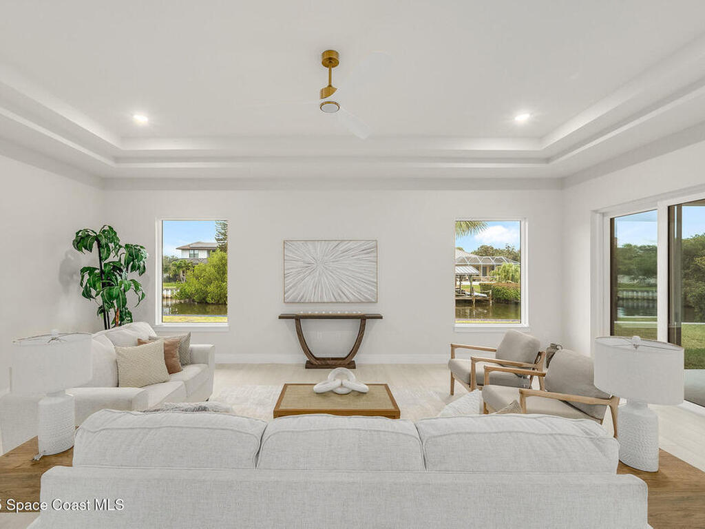 Welcome to this custom-built waterfront beauty in the sought-after South Indian River Isles community. Designed with quality and comfort in mind, this home features impact-resistant windows, a wide-open floor plan, and pristine finishes throughout. The kitchen is a true standout with white shaker cabinetry, champagne hardware, a spacious island, Cooktop with pot filler and built-in oven as well as a convenient butler's pantry offering additional storage and prep space. Large sliders open to the trussed patio, creating seamless indoor-outdoor living. Situated on a canal with direct access to the Indian River, a brand-new seawall gives you a secure foundation to create your ideal waterfront lifestyle--whether that includes a future dock & lift, pool, or custom outdoor oasis. Additional upgrades include spray foam insulation, a metal shingle roof, and conditioned attic storage.This exceptional home blends modern design with coastal living, offering a rare opportunity for new Construction