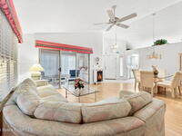 Located on a beautiful tree lined street in the Gated area of Village Grove in the golf course community of La Cita, This 2 bdrm residence was designed as a 3 bdrm home so in addition to a great rm w/ vaulted ceiling, bdrm #3 is now an open family rm to the kitchen & makes a great office /TV rm Same owners have occupied this home since 1994 & have kept it in pristine condition. NEW ROOF SHINGLES IN 12/2023. UPDATED KITCHEN IN 2023: CABINETS w/ SOFT CLOSE DOORS, NEW HANDLES, SINK & FAUCET & CORIAN QUARTZ COUNTER-TOPS. BUILT-IN COOK TOP, BUILT-IN OVEN & MICROWAVE & TILE BACK SPLASH. MOSTLY NEW ANDERSON WINDOWS IN 2023 ARE DOUBLE HUNG IMPACT WINDOWS (rated to 160 mph ) NEW HVAC IN 2020, NEW EXTERIOR PAINT 2021. Tile floors in the foyer, kitchen, family rm & enclosed porch w/ laminate in the living rm & bdrms. Glass enclosed side porch & screened back porch w/ insulated ceiling to enjoy the outdoors. NEW ELECTRICAL PANEL COMING. YARD MAINTENANCE IS PROVIDED BY THE ASSOCIATION. NICE!
