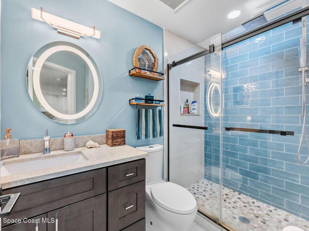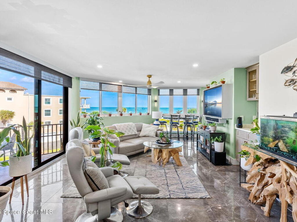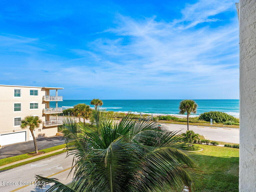 OCEANFRONT END UNIT WRAPAROUND CONDO- Stunning and fully updated 3 bedroom, 2 bathroom, oceanfront end-unit condo with panoramic ocean views through hurricane-impact windows and sliders. Comes with 2 parking spaces with an enclosed private 1 car garage. Included are 2 balconies with ocean views and a west-facing balcony for sunsets and wraparound natural light. High-end finishes throughout, beautiful tile floors, updated kitchen, spacious walk-in closet, and ocean views from the primary bedroom. Laundry in unit. The building recently completed major restorations with all assessments paid in full.Located in highly desirable Indialantic, south of 5th Ave, near top destinations: Melbourne Orlando Intl Airport, Orlando Intl Airport, Kennedy Space Center, Cocoa Beach, Sebastian Inlet, Vero, Viera, Brevard Zoo, Disney/Universal, and Port Canaveral.