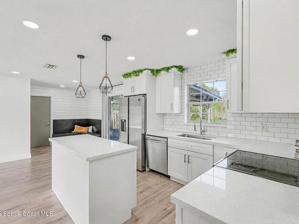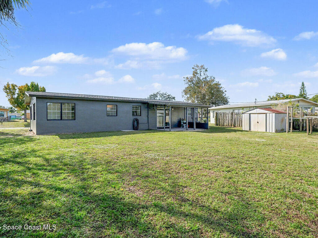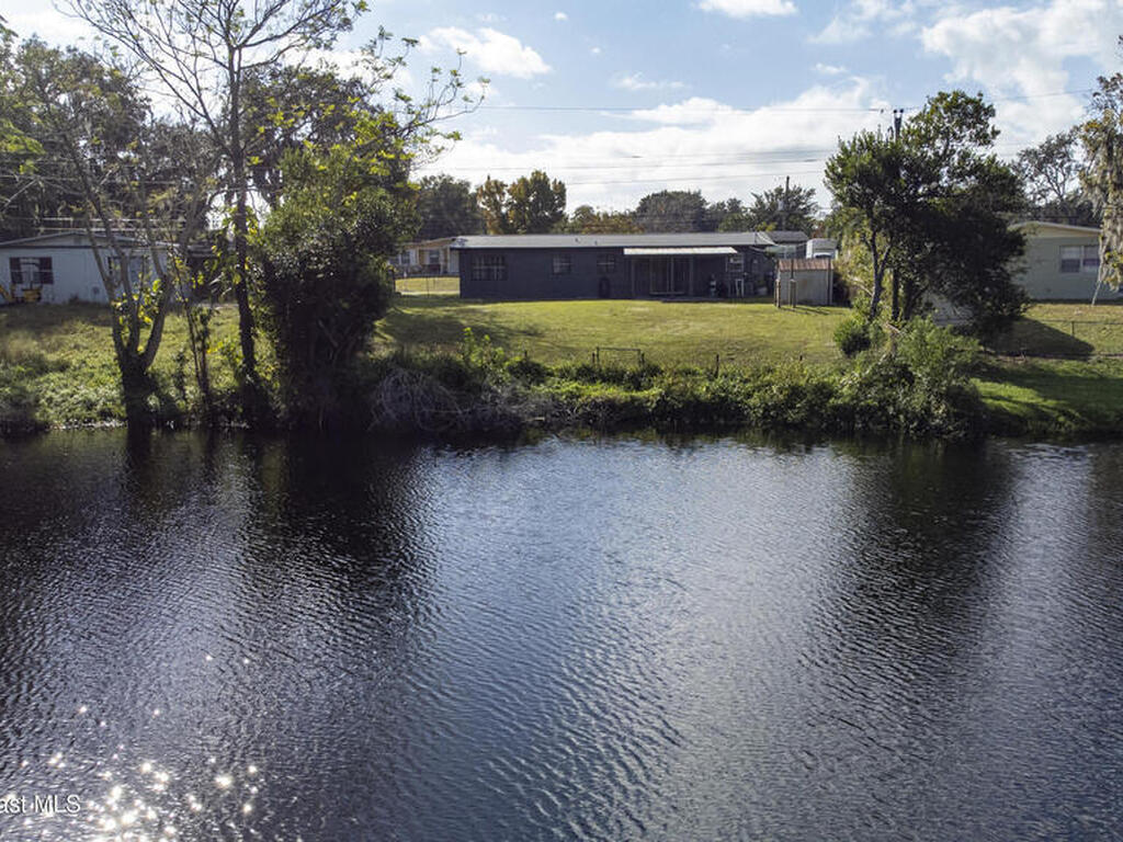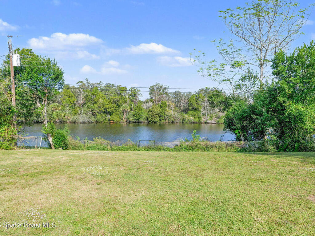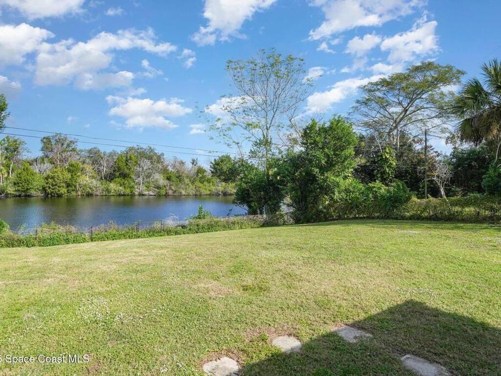 Move in ready with a beautiful waterfront view! This 3/1 home features an efficient layout including indoor laundry. Many recent renovations have been made to include a stunning kitchen with an island, featuring shaker cabinets with crown molding, subway tile backsplash, stainless appliances & quartz countertops. Updated bathroom, LVP flooring throughout, updated electrical, LED lighting and fans, drain lines have been replaced all the way to the road, and a brand new roof 11/25! Pond fed lawn irrigation with a new pump, large peaceful backyard with plenty of room for a shop or pool, and an extended driveway for additional parking. This home is located on a high and dry lot in the back of a quiet subdivision with minimal through traffic. Close proximity to dining and stores. Under a 30 minute drive to the beaches, the Space Center, and Viera!