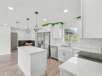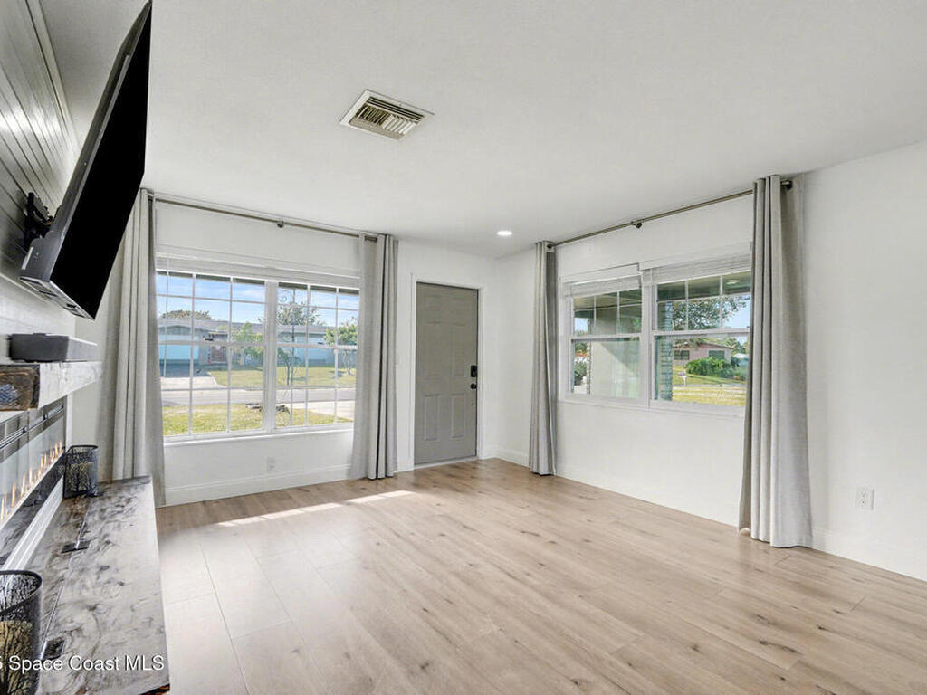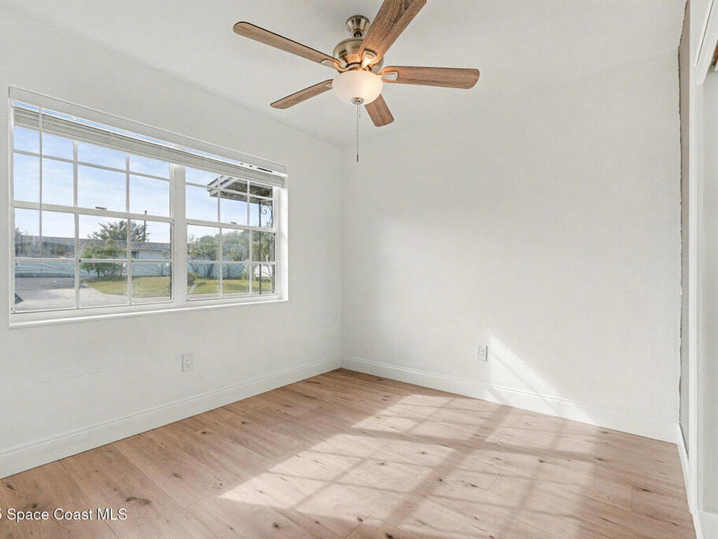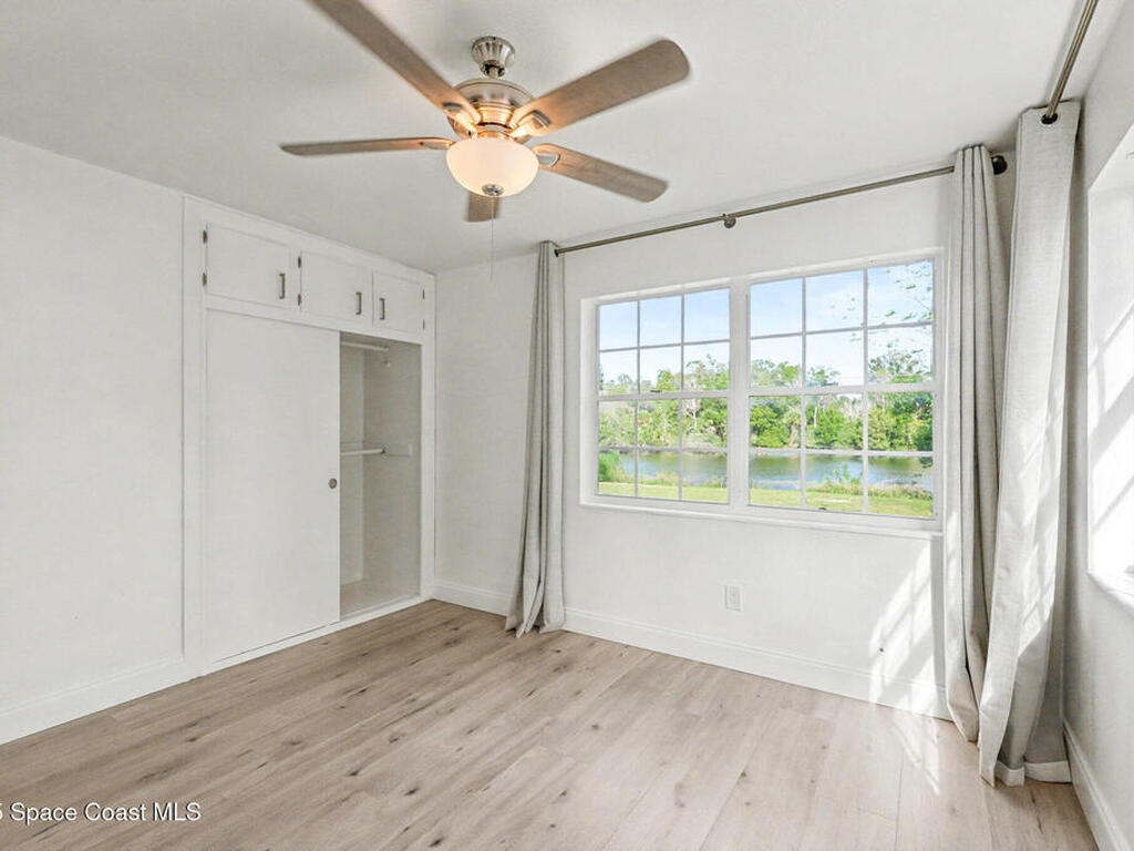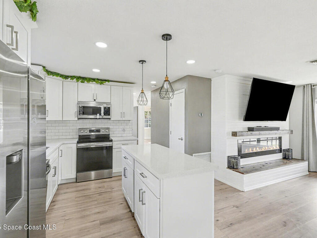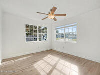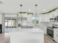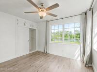 Move in ready with a beautiful waterfront view! This 3/1 home features an efficient layout including indoor laundry. Many recent renovations have been made to include a stunning kitchen with an island, featuring shaker cabinets with crown molding, subway tile backsplash, stainless appliances & quartz countertops. Updated bathroom, LVP flooring throughout, updated electrical, LED lighting and fans, drain lines have been replaced all the way to the road, and a brand new roof 11/25! Pond fed lawn irrigation with a new pump, large peaceful backyard with plenty of room for a shop or pool, and an extended driveway for additional parking. This home is located on a high and dry lot in the back of a quiet subdivision with minimal through traffic. Close proximity to dining and stores. Under a 30 minute drive to the beaches, the Space Center, and Viera!
