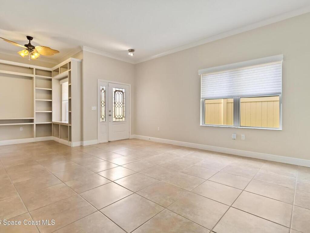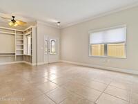 Remarkable, upgraded, and mint 3 bed, 2.5 bath home in the gated community of Pineda Ridge. This home sits on a beautiful nature area with a lake offering perfect views of mother nature. Upgrades throughout the home include crown molding, built in desk/bookcase, light fixtures, remote window shades, high efficiency toilets, closet built-ins, luxury bath with walk-in shower and soaking tub, rock style tiled screened lanai, amazing landscaping, Rainbird Sprinkler System, storm shutters, all gutters and downspouts, rock tiled pathway, and entire home is tiled. The floorplan is so versatile and flows perfectly for entertaining. Community pool! Location says it all, as you are minutes from everything, a quick drive to the beach and I-95. Yet, you feel like you are away from the busy in world in this small and quiet community with your nature oasis in your back yard. Yard care included in lease price. May consider 6-8 month rentals. Pet Friendly!