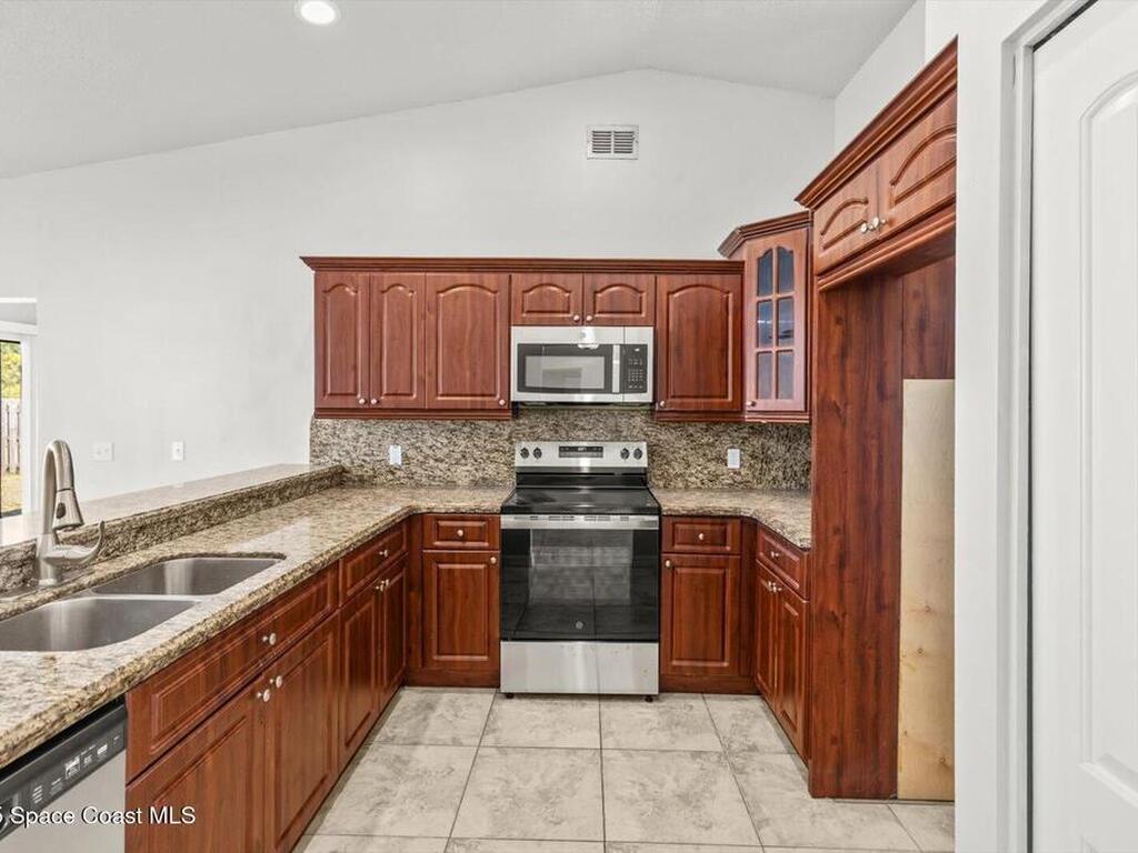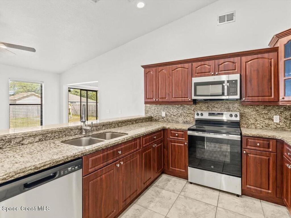 Step into style and comfort with this beautifully updated 3-bedroom, 2-bath home in the heart of Port St. Lucie. A large entryway and elegant double front doors set the tone the moment you arrive, leading into a warm and inviting living space highlighted by a fireplace -- a rare feature in Florida homes! The open kitchen is perfect for everyday living and entertaining, featuring granite countertops, crown-molded cabinetry, and a seamless flow into the main living areas. Fresh interior and exterior paint and a new roof give this home a crisp, move-in-ready feel. Major system updates include a 2025 water heater and durable metal hurricane shutters, ensuring peace of mind for years to come. Outside, the garage boasts a newly redone floor--clean, polished, and perfect for storage or hobby space. Great location near shopping, dining, and well rated schools.