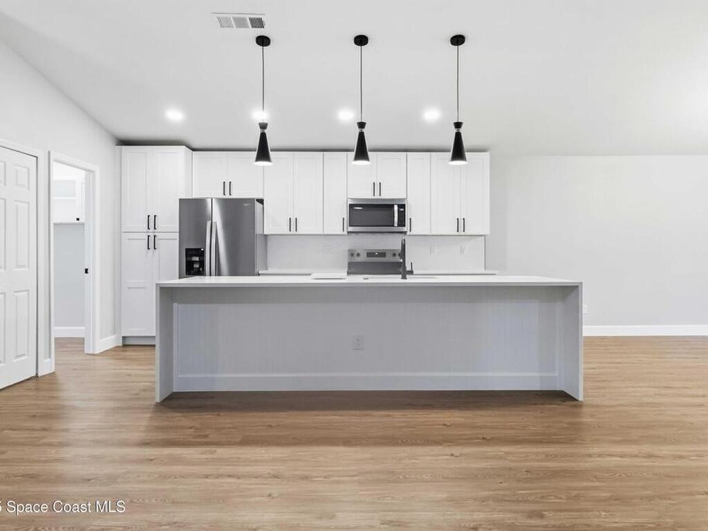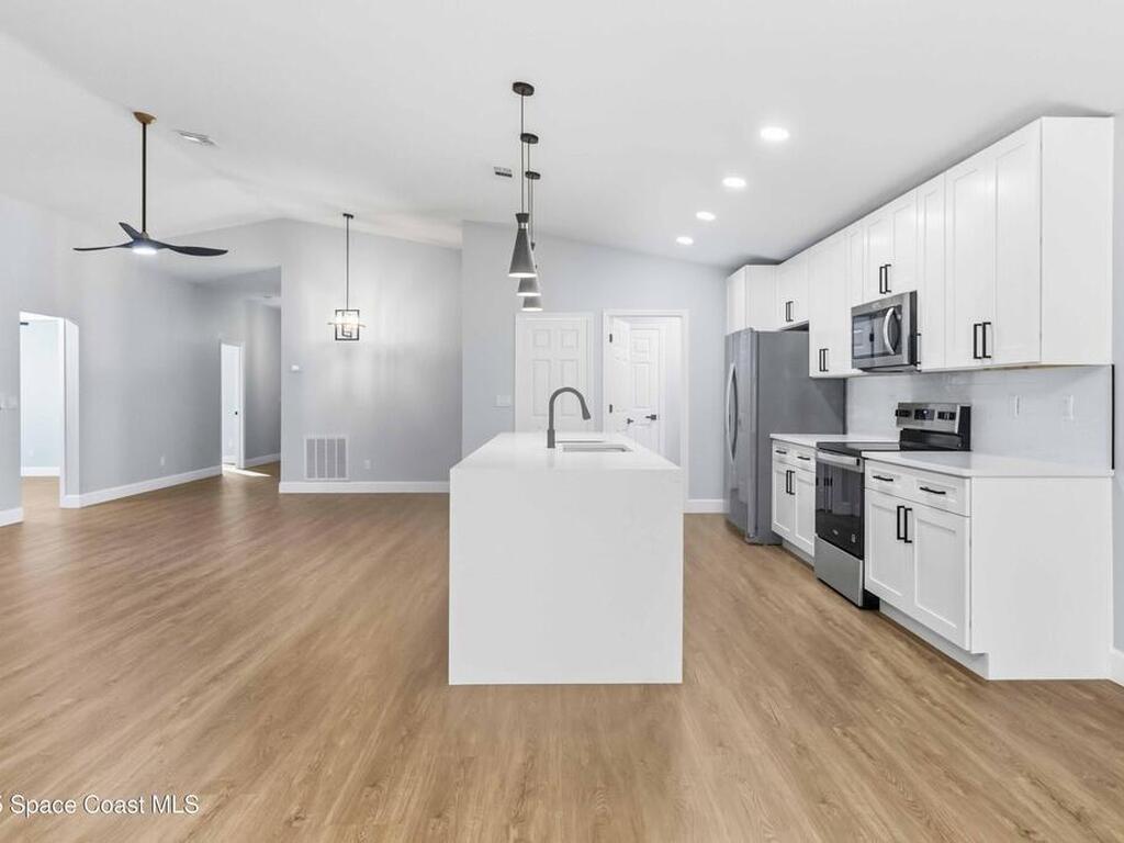 This charming 4BDRM, 2BA residence offers over1, 900sqft of living space with an open layout.The primary suite includes a generous walk-in closet, dual sinks and a luxurious shower.Kitchen has new 42'' cabinets, gorgeous backsplash, walk-in pantry, new stainless steel appliances w/ quartz countertops, a large center island and abundant cabinet space. The open concept living space is perfect for entertaining.Recent updates throughout the home, including new vinyl flooring, new epoxy garage floors, modern lighting, upgraded fixtures, fresh new interior and exterior paint.Best of all is new roof, new AC, new water heater, new wooden fence and impact windows