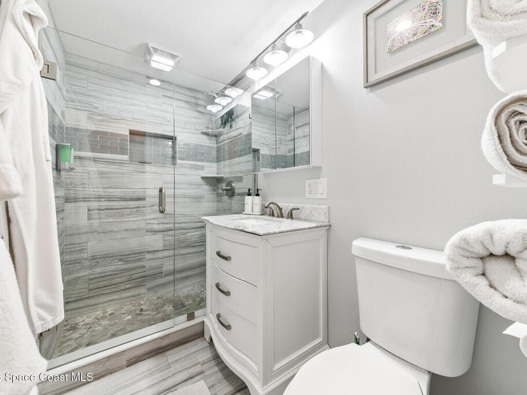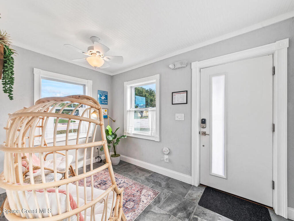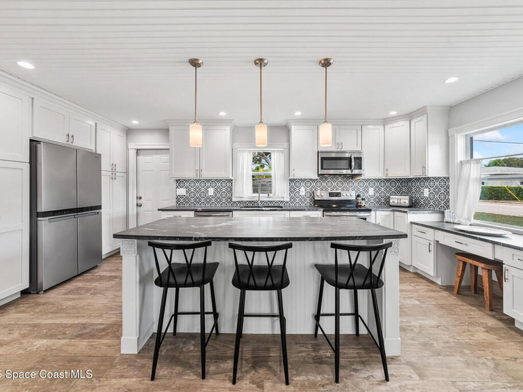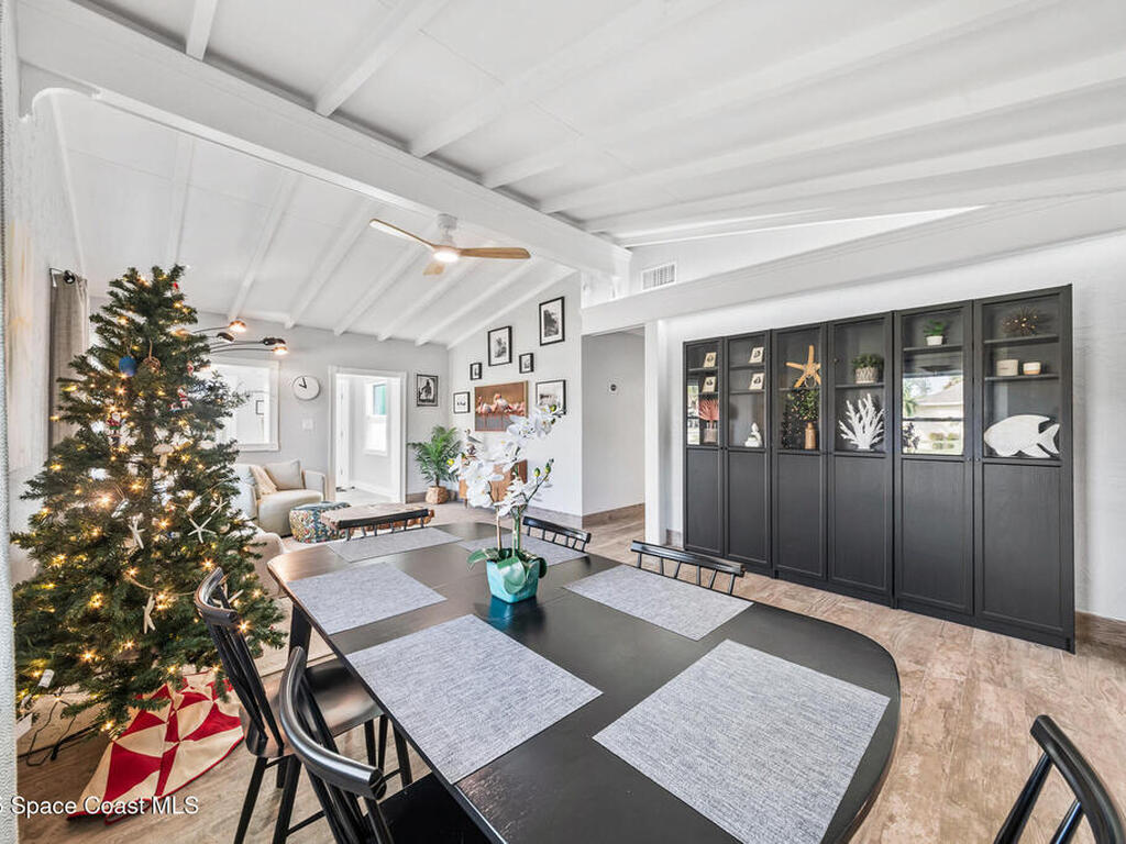 Location, charm and the true Cocoa Beach lifestyle... this one has it all! Just two blocks from the ocean and a short stroll to downtown Cocoa Beach, you're minutes from the best restaurants, shopping and entertainment the area has to offer. Positioned on a corner lot this beautifully remodeled 4-bedroom, 2-bath home delivers both style and convenience. Inside, you'll find a bright open-concept living space with vaulted ceilings, quartz countertops, a stunning updated kitchen with island and terrazzo floors in the bedrooms that add a touch of timeless coastal charm. The backyard feels like its own private retreat complete with a deck, privacy fence and an outdoor shower which is perfect after a day at the beach! Whether you're searching for a full-time residence, a vacation getaway or an Airbnb investment this home checks all the boxes! Impact rated windows, Roof 2023, AC 2018, Water Heater 2016. 15 min to Port Canaveral, 45+ min to Orlando