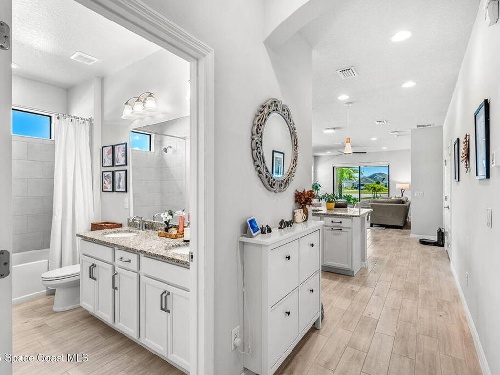 Step into your slice of the Viera lifestyle! This 3-bed, 2-bath gem delivers the perfect blend of comfort, style, and ''let's-live-a-little.'' An open floorplan anchors the home, featuring an island kitchen with granite counters, ideal for coffee-fueled mornings or hosting the whole crew. Tile in the main spaces keeps things fresh, while the bedrooms offer soft carpet and a roomy walk-in closet you'll actually brag about. Pre-wired surround sound sets the scene for movie nights, and the screened patio is ready for breezy evenings under the stars. All of this in a community loaded with amenities, surrounded by A-rated schools, shopping, dining, and everything that makes Viera one of the Space Coast's most loved spots. This is where easy living and everyday convenience collide!