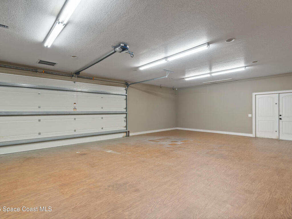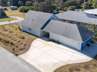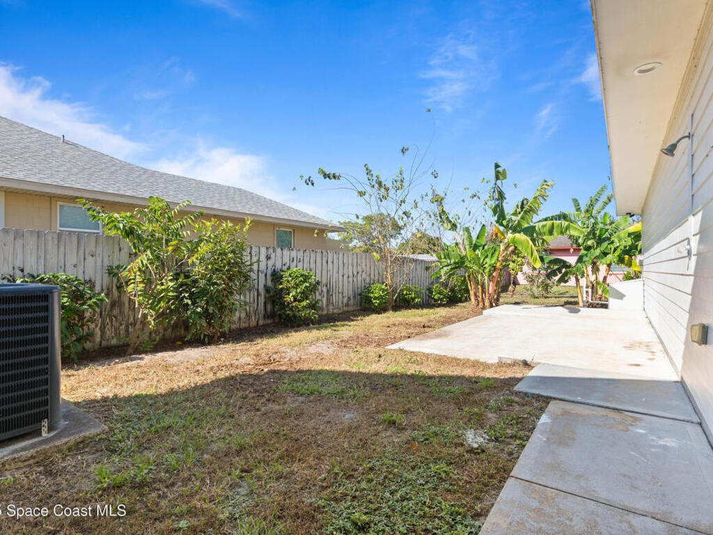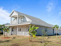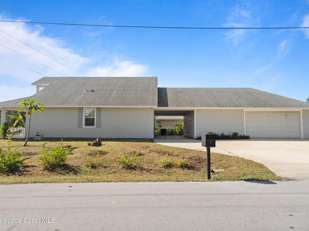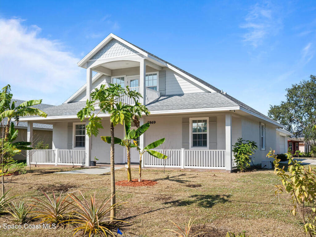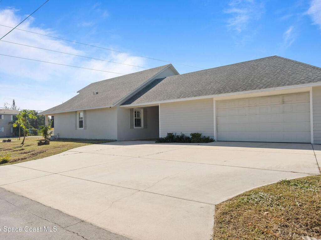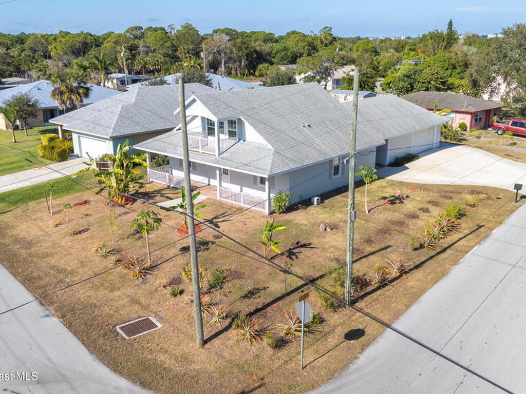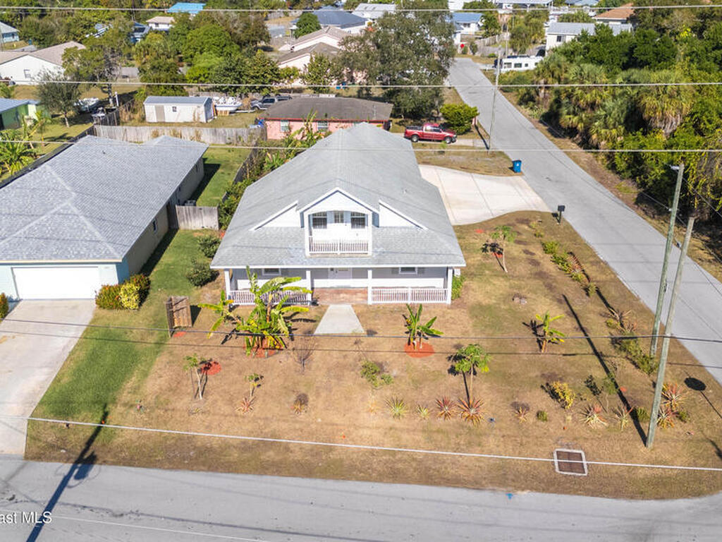 Custom 3 bed, 2 bath, 2, 148 sq ft home close to the Indian River and beaches, in the heart of the Space Coast aerospace and tech hub. Enjoy water views from your private primary balcony, tall ceilings, solid wood floors, granite in the kitchen and baths, an island with bar seating and premium solid wood cabinetry, plus quality fans, upgraded lighting, smart style controls, central vacuum and professionally run wiring. Freshly painted inside and out with board and batten accents, breezeway, irrigation and spray foamed attic spaces, it lives larger than the numbers suggest with approx. 3, 630 sq ft of usable space including bonus areas. Outside, mature banana, guava and citrus trees, upgraded locks, a camera system, concrete pads for an RV, boat, trailer or toys and a giant three car garage workshop with its own AC complete the picture. With no HOA and this level of quality, it is a Space Coast opportunity you will not want to miss.