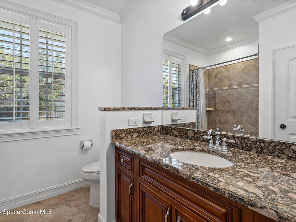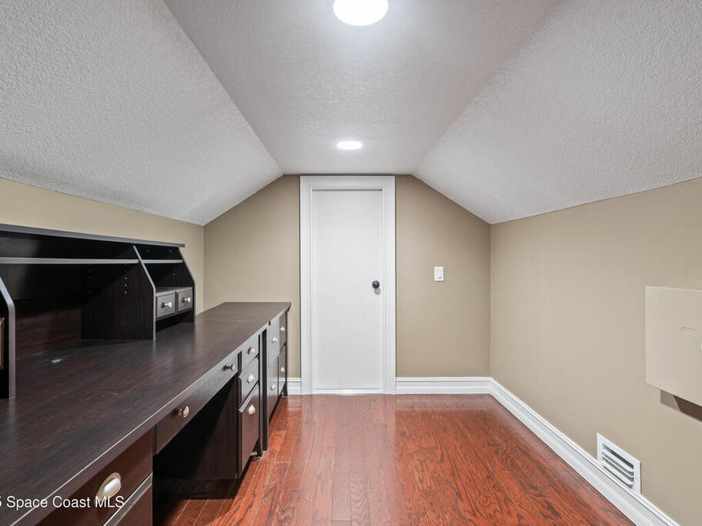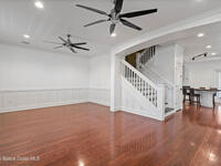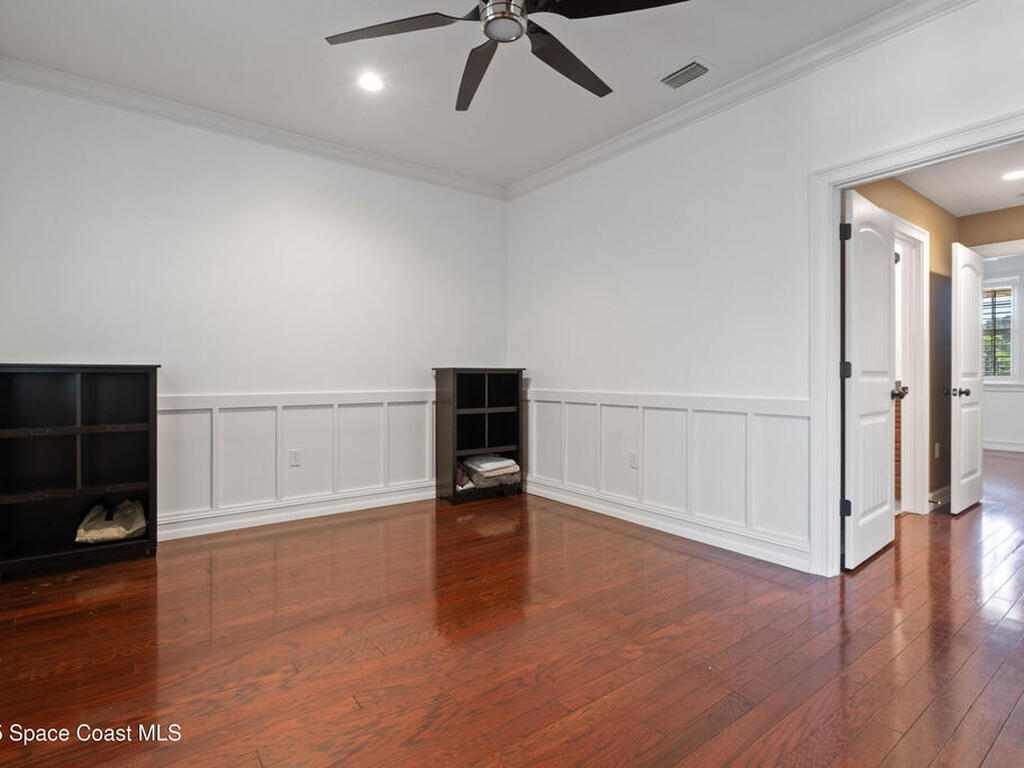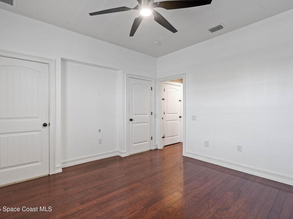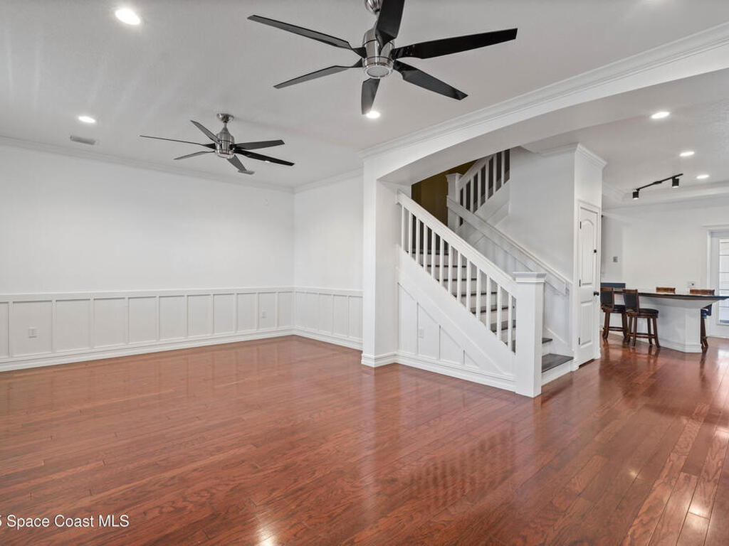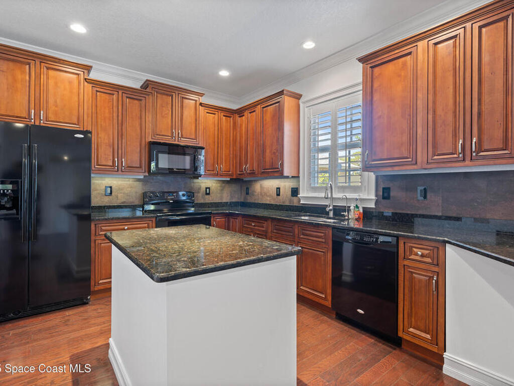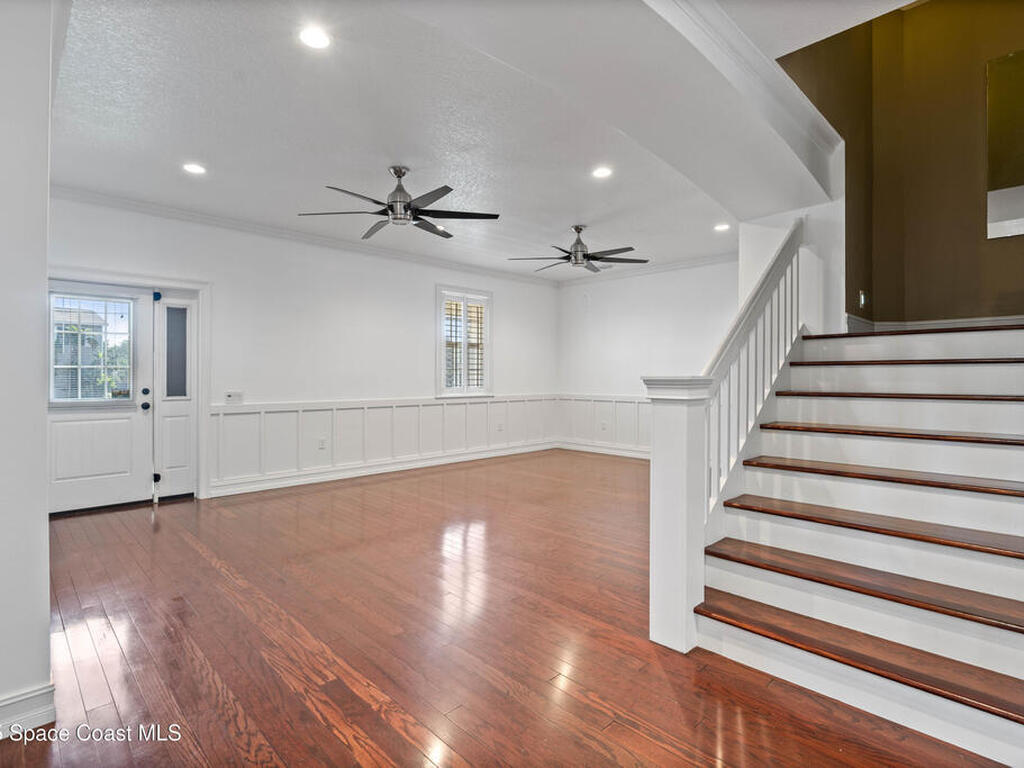 Custom 3 bed, 2 bath, 2, 148 sq ft home close to the Indian River and beaches, in the heart of the Space Coast aerospace and tech hub. Enjoy water views from your private primary balcony, tall ceilings, solid wood floors, granite in the kitchen and baths, an island with bar seating and premium solid wood cabinetry, plus quality fans, upgraded lighting, smart style controls, central vacuum and professionally run wiring. Freshly painted inside and out with board and batten accents, breezeway, irrigation and spray foamed attic spaces, it lives larger than the numbers suggest with approx. 3, 630 sq ft of usable space including bonus areas. Outside, mature banana, guava and citrus trees, upgraded locks, a camera system, concrete pads for an RV, boat, trailer or toys and a giant three car garage workshop with its own AC complete the picture. With no HOA and this level of quality, it is a Space Coast opportunity you will not want to miss.