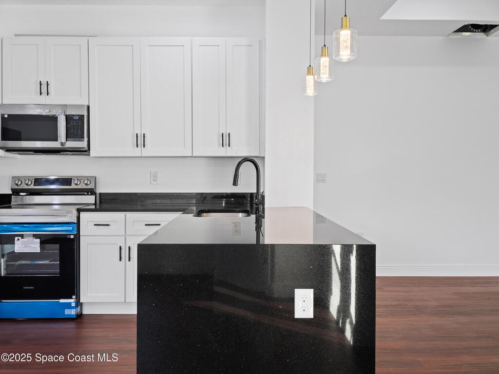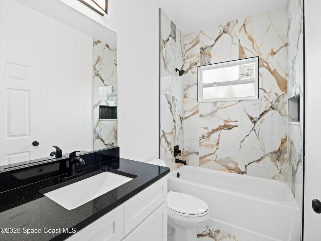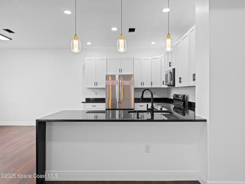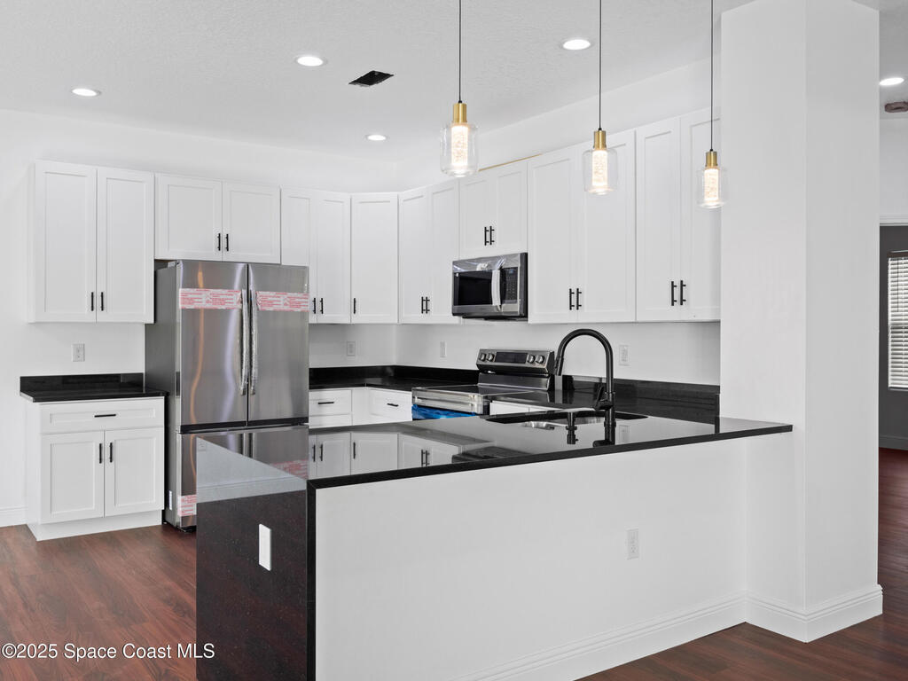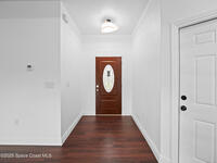 Brand New Construction with Hurricane Impact Windows! Open floor plan with 9'4'' ceilings throughout and tray ceilings in the master bedroom and living room. In the kitchen you have 42'' white shaker cabinets, granite countertops with a stunning waterfall edge, and stainless steel appliances. Primary bedroom has a generous size walk-in closet and the primary bathroom has dual sinks, shower and stunning tile work throughout. Split floor plan with two more bedrooms and a bathroom on the other side of the house. Luxury Vinyl Plank and tile floors throughout the house. Centrally located near schools, shopping, highway, less than 25 minute to NASA, less than forty minutes to the airport and less than fifty minutes to all the attractions & theme parks in Orlando.