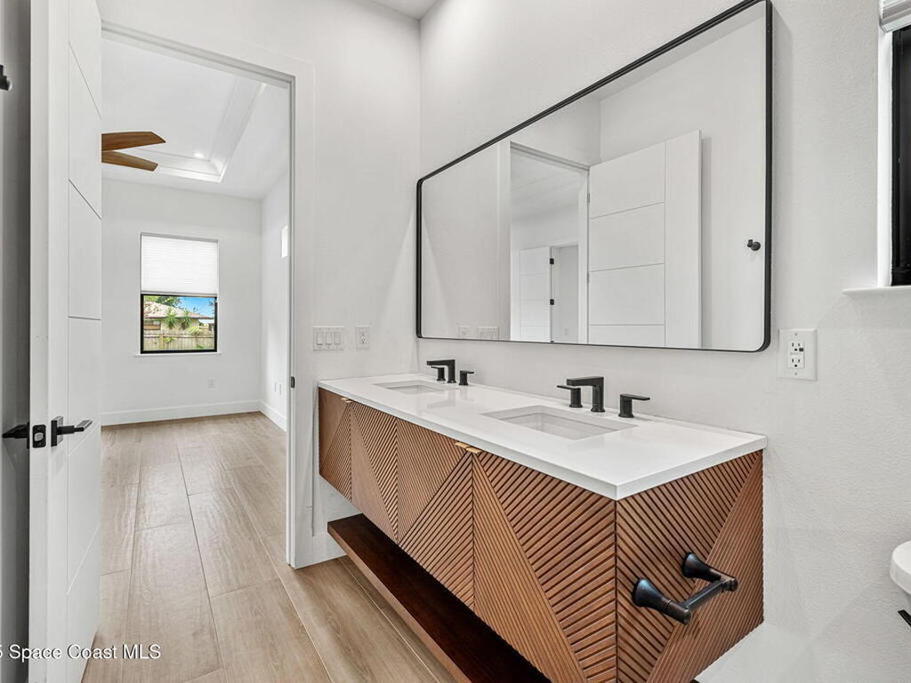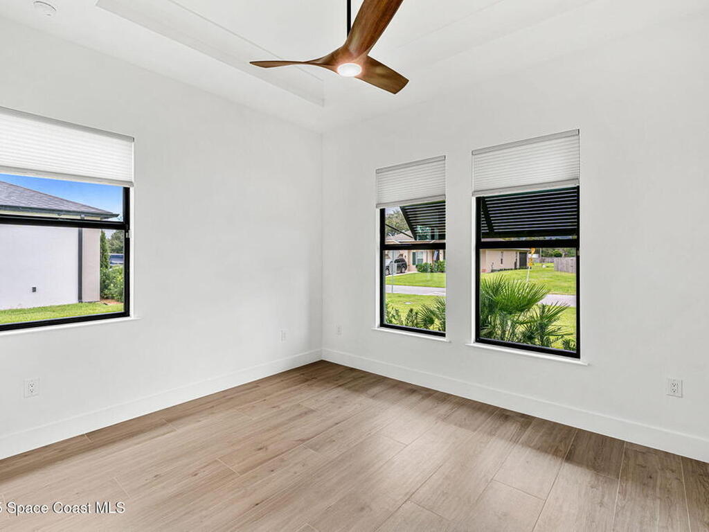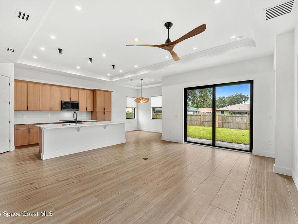 Seller is offering a 2/1 rate buydown totaling $10, 026, with a first-year interest rate as low as 4.25%--a rare opportunity to enjoy brand-new construction with added affordability. Built by Brevard's Builder of the Year, this award-winning home is move-in ready and designed for modern living. From the paver driveway and 8' impact-rated entry door to the lush landscaping, every detail feels intentional. Inside, 10' ceilings, oversized windows, and tile floors create a bright, open atmosphere. The gourmet kitchen anchors the home with frameless wood cabinetry, quartz countertops, a large island, dual pantries, and Samsung BeSpoke appliances--ideal for both everyday living and entertaining. Smart home automation, impact-rated windows and doors, an EV charger plug, solid wood interior doors, Kohler fixtures, blinds, and gutters add comfort, efficiency, and peace of mind. This is new construction at its finest--thoughtfully built, beautifully finished, and ready to welcome you home.