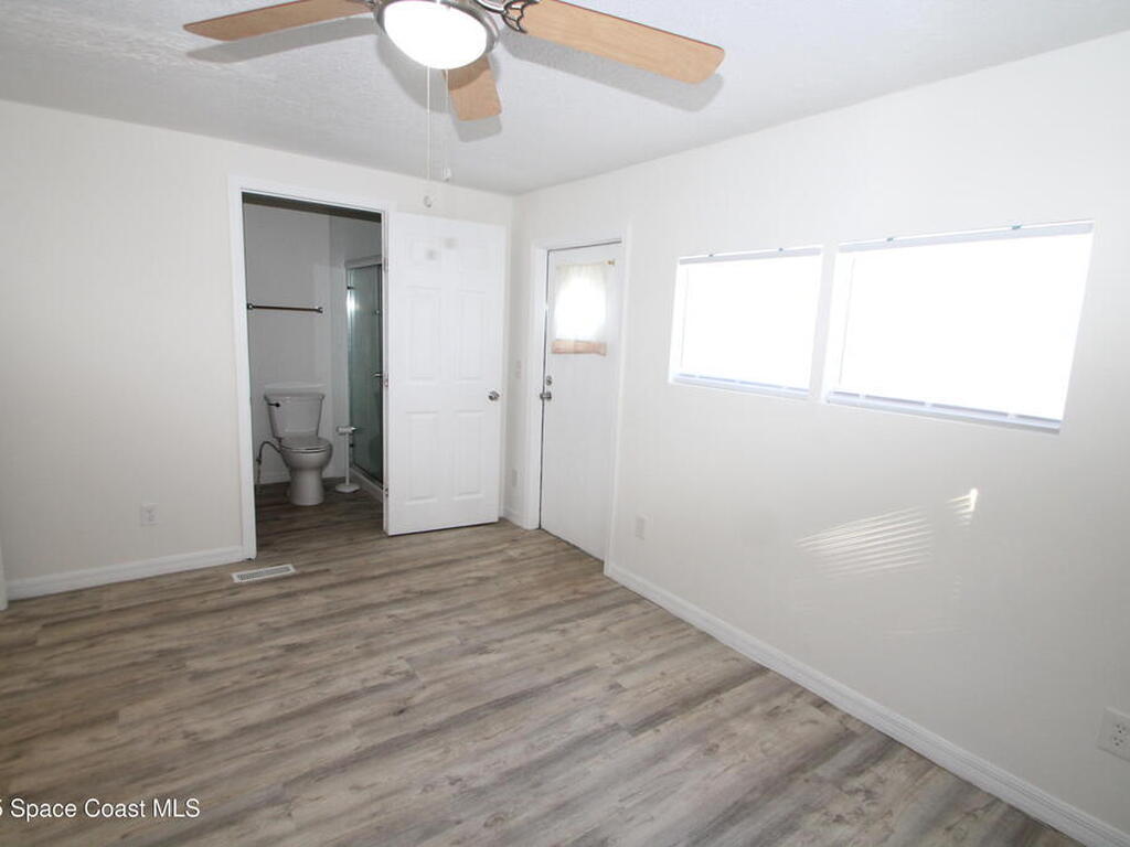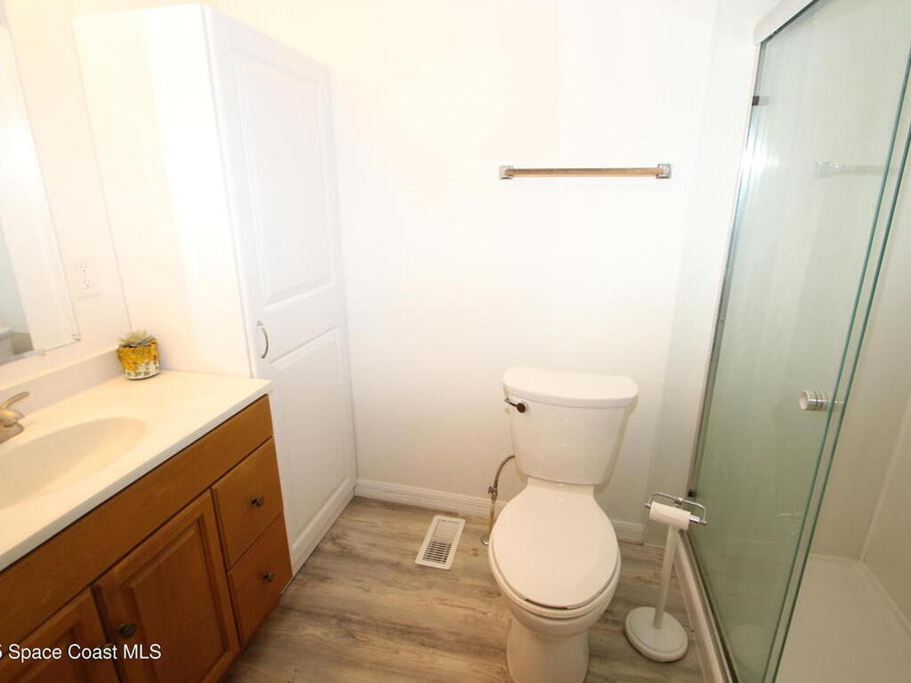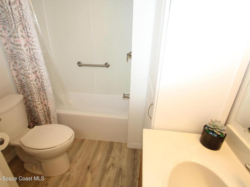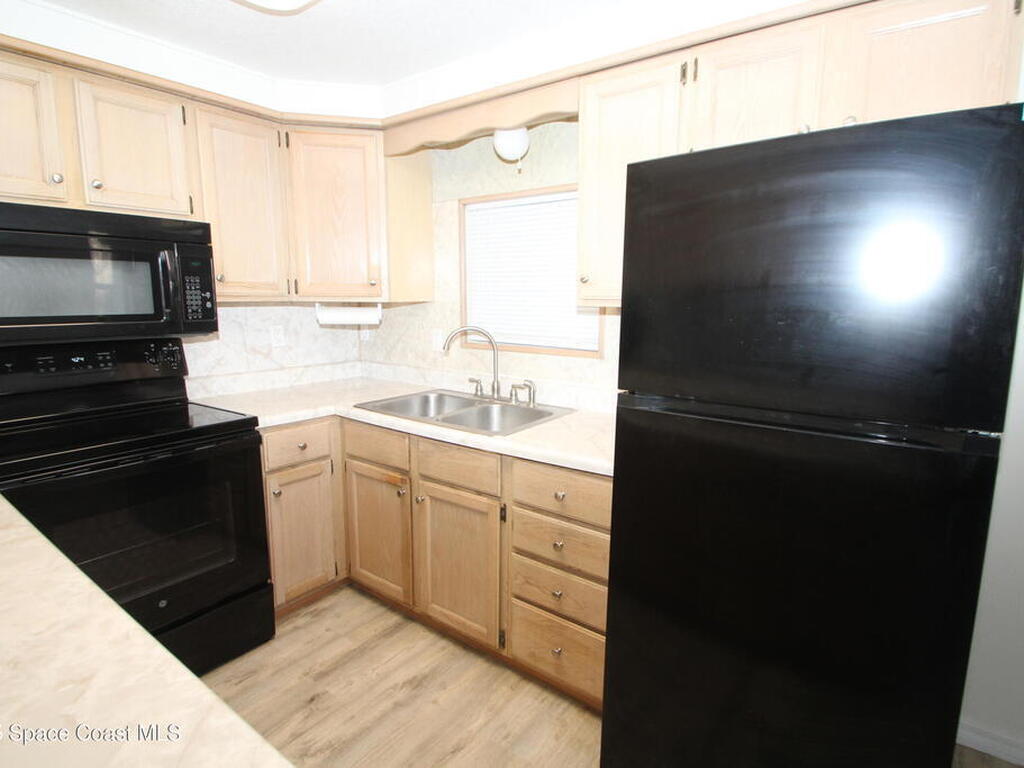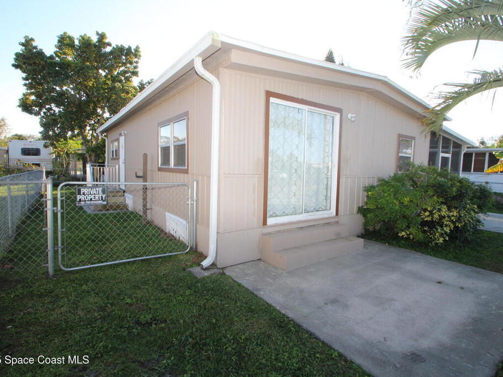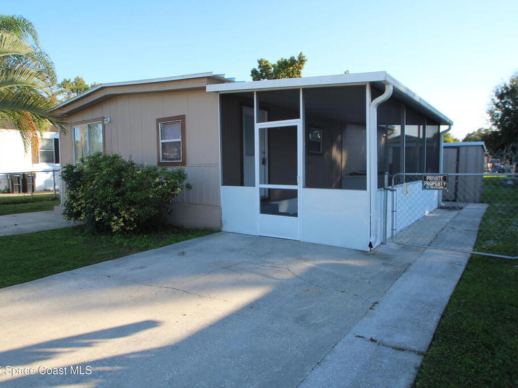 Move in ready 2 Bedroom, 2 Bath with NO HOA fees & NO LOT RENT. Own the land and home. Nice kitchen with lots of counter space & updated appliances. Large family room, vinyl flooring, and no carpet! Both of the bathrooms are updated with new cabinets, vanities & toilets. Large screened porch, fenced yard, 10X8 storage shed plus indoor laundry with washer/dryer included. City Water/Sewer. Great location close to beaches, Indian River, downtown Melbourne, Harris, and more. Double metal roof, AC & Water heater 2020