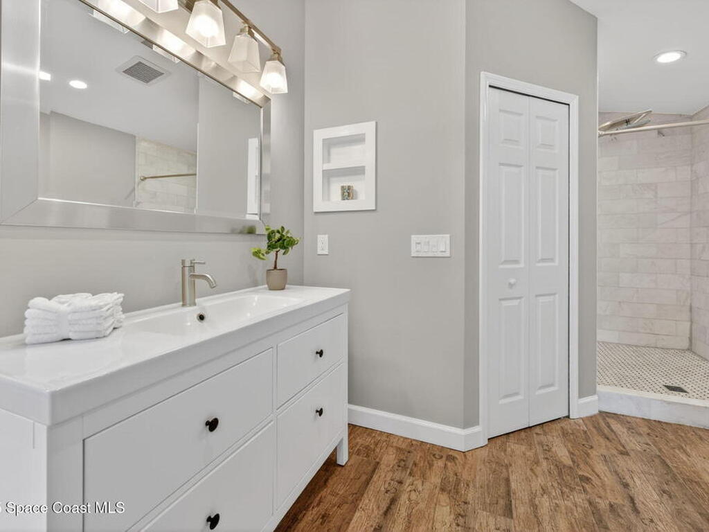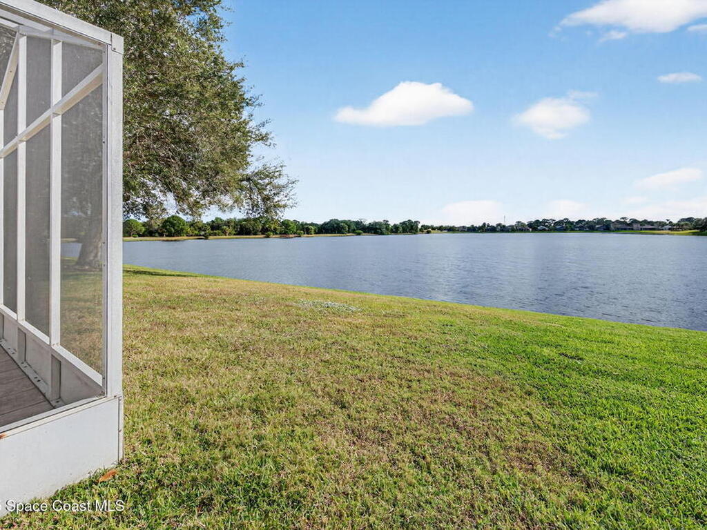 Beautifully maintained & UPDATED Viera home! Enjoy peaceful mornings & relaxing evenings on the expansive screened back porch with picturesque water views. This one is truly a must-see and will not disappoint. Featuring modern finishes & tile floors throughout, this home offers a bright, clean, and timeless look. The gorgeous kitchen features stainless steel appliances, sleek modern countertops, and a fantastic walk-in pantry, providing exceptional storage for the home chef. The home also includes multiple custom built-ins, offering style, organization, and elevated functionality throughout. Retreat to the primary suite, complete with a custom-designed master closet that maximizes space & convenience along with a custom shower. With 4 bedrooms , 2 baths, and a 2-car garage, this home offers comfort, flexibility, & room to grow. Freshly painted exterior, Roof 2017, and A/C 2021. Community Pool! Close to great schools, shopping and all that Viera has to offer!