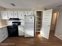 Don't miss your chance to live on the Space Coast and see launches from your yard! Very affordable small home for snowbird or year-round resident in a friendly 55+ community. Brand new walk-in shower, toilet, bathroom floor and vanity countertop. You have great opportunity to update kitchen with your personal touch. Nice & clean LVP throughout. Sliders open to screened porch and ramp provides wheelchair access. You'll have no more lawn care since the HOA dues covers it - along with water and sewer! You'll also have no more land lease since you'll own the land! Carport has large secure storage room with washer/dryer (included). Easy access to Cocoa Beach, KSC and MCO. Priced to sell, this one won't last!