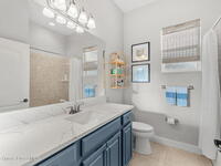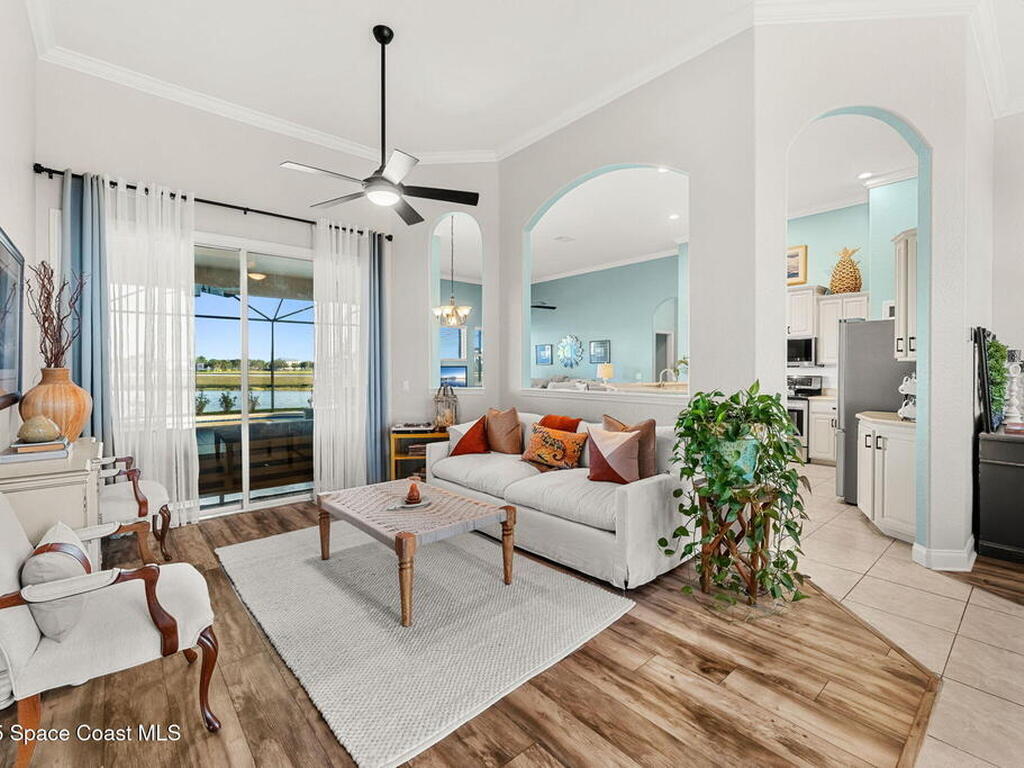 Don't wait! LOCATION! LOCATION! LOCATION! This gated neighborhood in sought after north Viera is home to this beautiful lakefront/saltwater pool gem! This open floorplan is turnkey with upgrades galore. Roof is 2020, HVAC and Water heater 2025, & hurricane panels offer peace of mind and low maintenance. High ceilings offer light and space. Split floorplan with upgraded quartz. Crown molding, LVP and hot tub are just added benefits. With easy access to all things Viera, come live your golf cart lifestyle today! Close to shopping, restaurants and beaches.