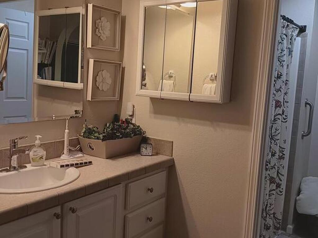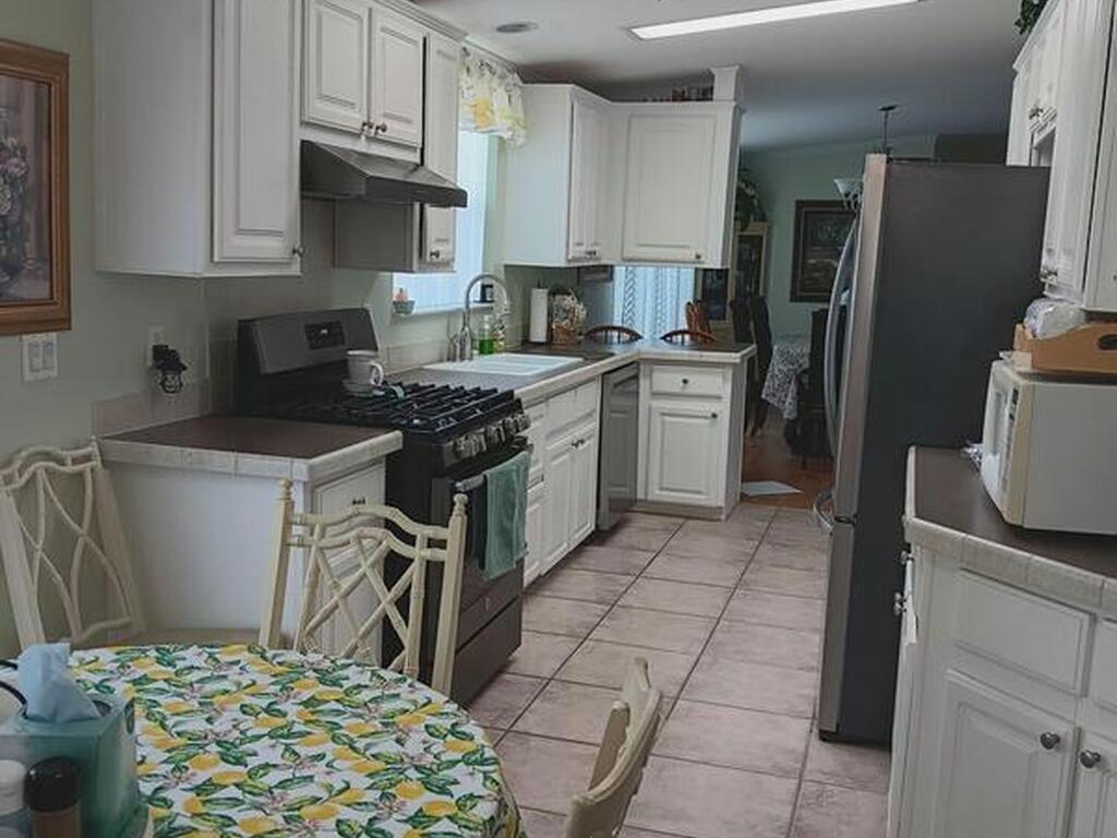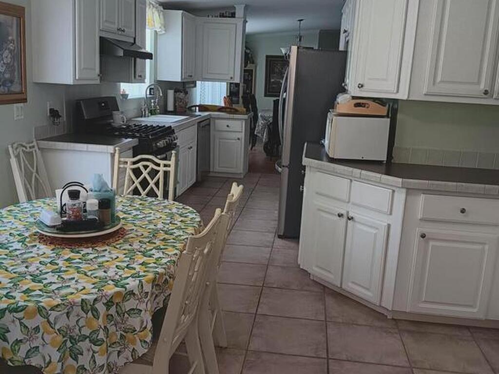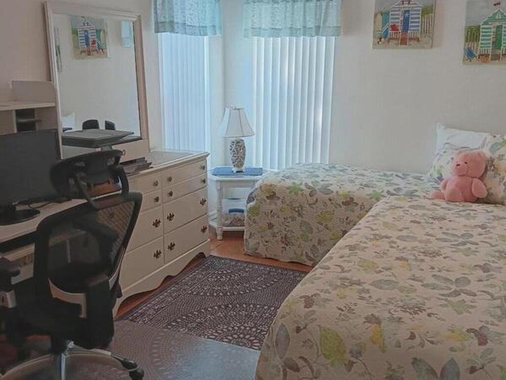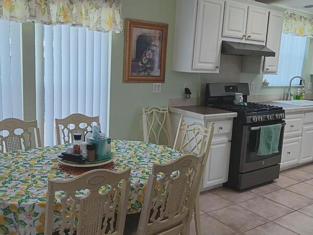 This spacious home has 3 bedrooms and all enclosed front room with French doors leading to the rest of the home. Large kitchen with pantry and plenty of cabinets. Open dining room and living room Separate master bedroom suite with bath plus 2 more bedrooms and full bath. All interior doors are 36'' wide. Home has many updates including, Roof 2023, Hot water heater 2023, AC 2018 just refurbished, water filter, refrigerator and washing machine brand new, Large lot with mature trees for shade, Barefoot Bay offers many amenities for all to enjoy including Private dock and beach. You own the land!