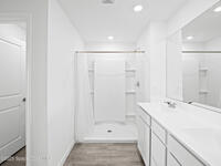 Beautiful 3BR/2BA single‑story home in the desirable Tillman Lakes community. This Lennar-built home features an open-concept layout connecting the kitchen, dining room, and Great Room--perfect for modern living. The kitchen offers White Shaker cabinets, an oversized quartz island, and ample storage. Wood plank tile flooring runs throughout all main living areas. The spacious Owner's Suite includes an oversized walk‑in closet and a luxurious walk‑in shower. Home is finished with 2'' faux wood blinds for added privacy. Enjoy the convenience of a single-story layout in a peaceful, well-maintained community.
