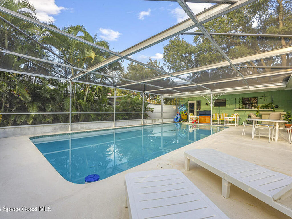 Discover your dream home in the heart of Merritt Island! This exquisitely updated 3-bedroom, 2-bath residence boasts a split floor plan and a serene screened-in in-ground pool oasis perfect for Florida living. Benefit from major modern upgrades, including a brand-new A/C (2024), a new pool pump and updated electrical panel and PVC plumbing (2023), a refreshed roof (2019), and a contemporary water heater (2017)--ensuring lasting comfort and worry-free living.Step inside to an open, airy layout featuring expansive living spaces, a charming free-standing fireplace, and a luxurious primary suite complete with a sleek tiled walk-in shower. The guest bath enchants with a relaxing jetted tub. Outside, cultivate unforgettable moments in your private backyard--ideal for both lively entertainment and peaceful relaxation by the pool.Blending timeless Florida charm with modern conveniences, this move-in-ready gem is not to be missed!