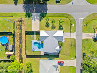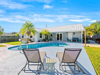Beautiful Pool Home w/ Key West Charm Feel, situated on a Large Fenced Corner Lot, Providing a Private Oasis Retreat! High Value items on this Home include a New Seamless Metal Roof & Hurricane Impact Windows, offering a lifelong sense of security during Florida's tropical weather. Enjoy an open backyard w/ Sparkling Pool surrounded by a Patio & covered Porch w/ Fans for loungers to relax & abundance of space for entertaining. Low Maintenance Rock Landscaping around the property along with Vinyl Siding, Decorative Shutters, & Screened entry gives this home character. Plenty of Parking for Vehicles, Boats, or RV w/ a Full 2 Car Garage & Secondary Side Driveway. The Interior Features LVP Neutral Wood Flooring Thru Out, Vaulted Ceilings, White Kitchen w/ Sleek Granite Bar, Two Family Room Options & Eateries, Split Floor Plan w/ 2 Guest Bedrooms sharing 1 Updated Bathroom & Spacious Primary w/ Double Closets & Sinks, Tile Shower & its own Access to Outdoors! No HOA & Close to Parks!
