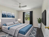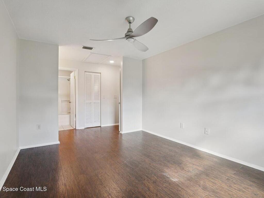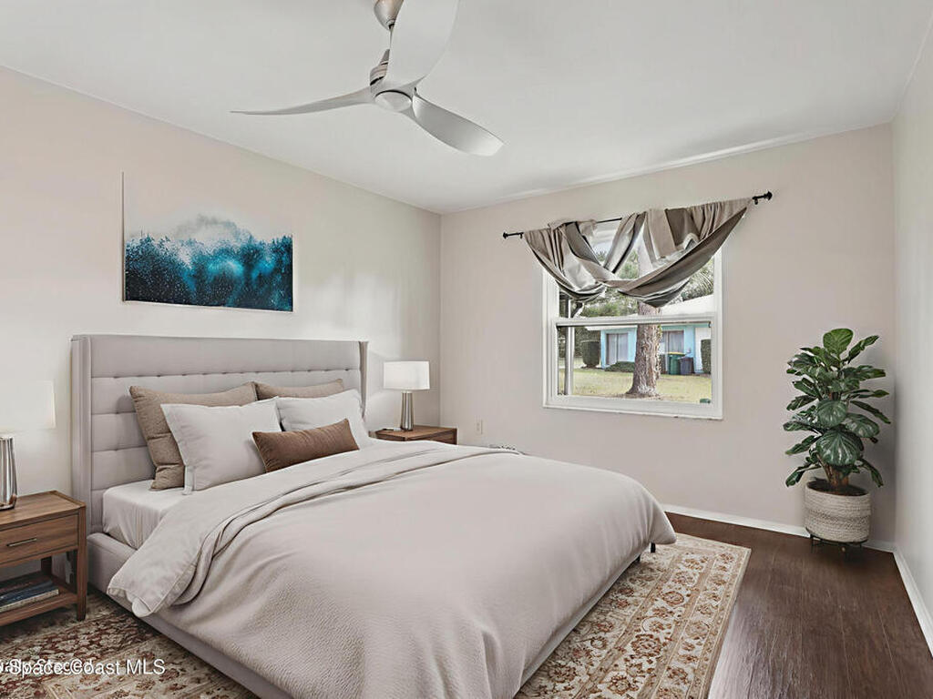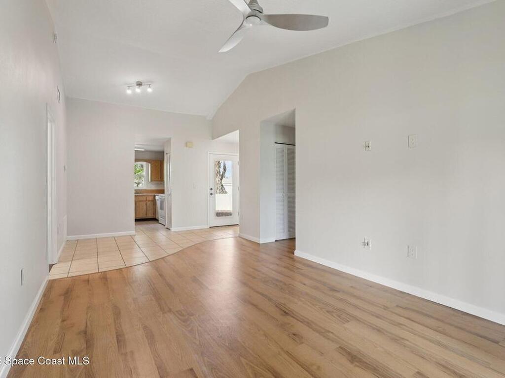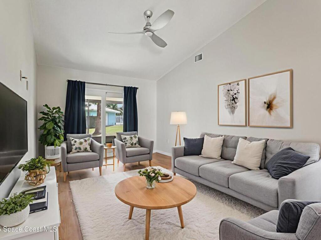 Discover comfort and convenience in this beautifully maintained 2-bedroom, 2-bathroom half-duplex located just moments from the scenic trails, lake, and recreation areas of Wickham Park. Inside, you'll find an open-concept floor plan perfect for relaxing or entertaining, complete with generous natural light and a seamless flow into the dining and kitchen spaces. No carpet! This property includes fresh interior paint, laminate and tile floors. The second bedroom is perfect for a family, guests, or a dedicated home office. A second full bath ensures convenience and privacy for all. Step outside to enjoy a private patio and a low-maintenance yard--an ideal spot for morning coffee. Just steps away from the community pool that sits directly behind the home. Recent updates include a newer roof (2018), an impact garage door, and impact windows (2023).