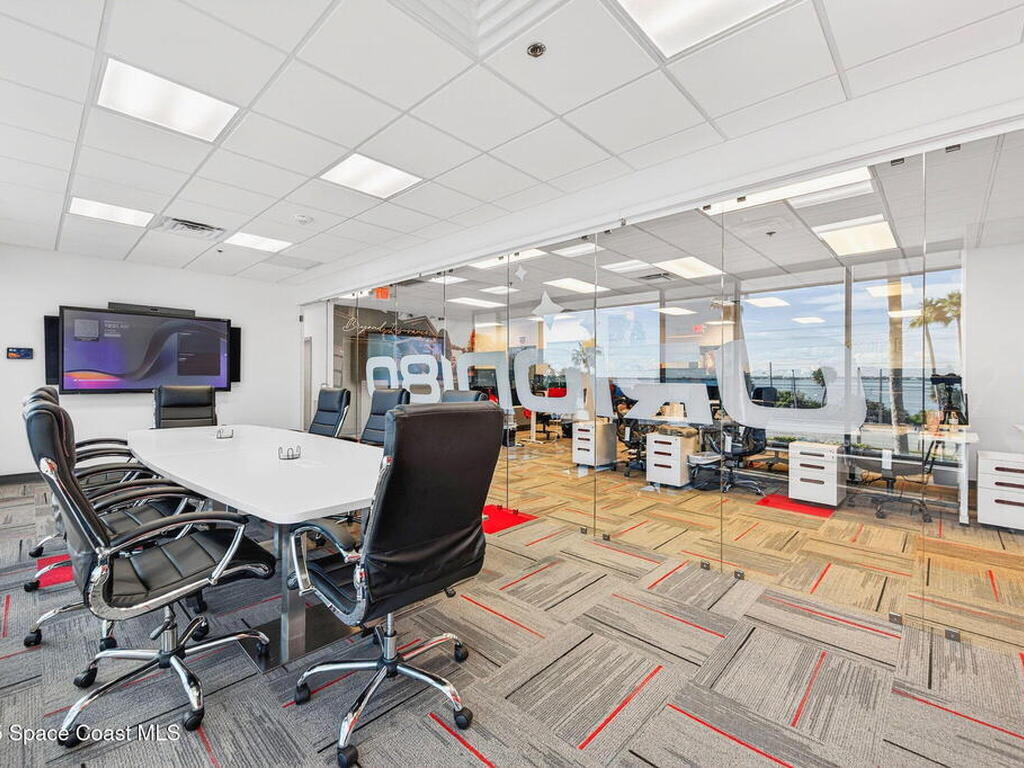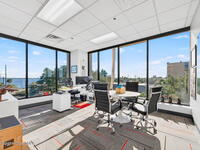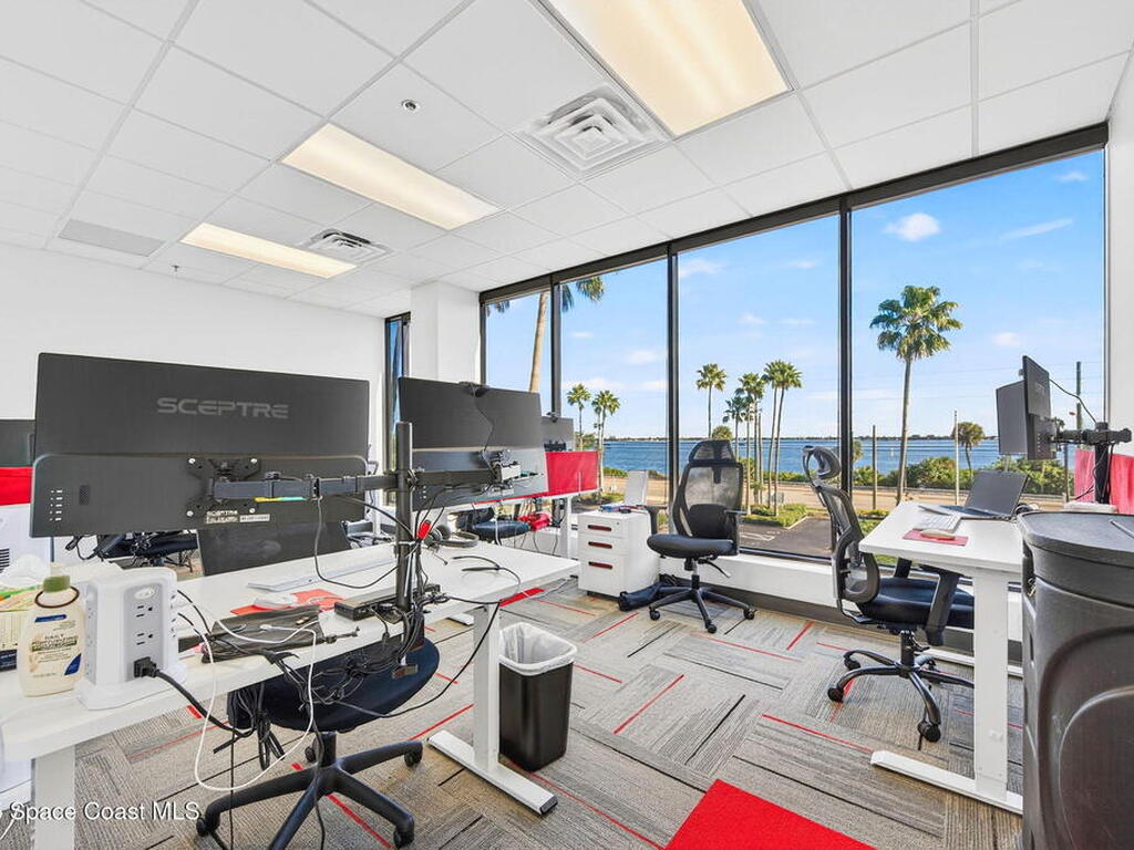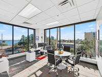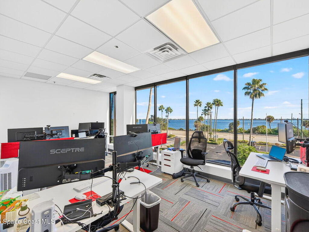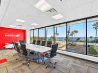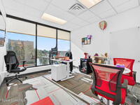 Prime 3rd-floor, 4, 628 sq ft suite with river views in Class A Riverside Center. Features a glass-enclosed conference room overlooking the water, two large bullpens, four river-view offices, two additional offices, a full kitchen break room, and two secured storage rooms, with access to common-area restrooms. Close to the airport and major employers, with high visibility on Harbor City Blvd (32, 000 cars/day). All offices include new solar shades, and the property offers ample parking.