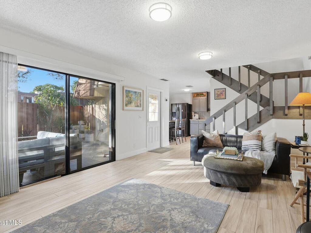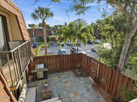Welcome to Vista Oaks West, tucked away in a park-like setting. This inviting townhome offers an open main level w/comfortable living area, No Carpet & updated kitchen featuring custom cabinetry perfect for relaxing or hosting friends. Upstairs, you'll find 2 large Bedrooms & updated bath providing a peaceful retreat for everyday living or visiting guests. A updated 1/2 bath & laundry room is located downstairs. Step outside to a charming, private courtyard w/custom tile, visible from multiple sliding doors & balconies, bringing in wonderful natural light. Hurricane fabric protection & underground utilities offer added peace of mind. Recent updates include 2025 roof, water softener, filtration system & instant hot water heater. Ideally located close to shopping, dining, parks, beaches & major employment. HOA covers water, sewer, trash, landscaping & high-speed internet/cable. Reserved parking plus plenty of guest spaces make this a great fit for 1st time buyers, snowbirds & Investors.