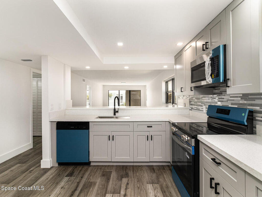 Welcome to this beautifully remodeled end-unit condo offering modern coastal style and effortless beachfront living. The bright, open layout features a brand-new kitchen, spacious living area, and an oversized balcony with stunning ocean views. Enjoy generous bedrooms, updated bathrooms, in-unit laundry, and secure underground parking. Just steps from the beach, downtown Cocoa Beach dining, shopping, live music, and the iconic pier, this prime oceanfront retreat is perfect as a full-time residence.