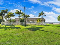 An extraordinary opportunity to own a rare 4+ acre riverfront lot on coveted North Merritt Island, featuring 350 feet of direct Indian River frontage. This exceptional property offers the perfect canvas to create a custom-built waterfront dream estate in one of the Space Coast's most desirable and private settings. Set at the end of a quiet street and surrounded by lush tropical landscaping, the property provides remarkable privacy while offering a front-row seat to breathtaking sunsets and the dynamic backdrop of rocket launches. The private dock allows for effortless boating access, whether cruising to nearby islands, dockside dining, or passing through the Canaveral Locks for offshore fishing and adventure.