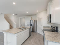 Discover the perfect blend of space and style in the sought-after two-story Hayden floorplan in Palm Bay Florida. This stunning 5-bedroom, 3-bathroom home offers 2, 601 sq. ft. of versatile living space and a two-car garage. Luxury vinyl plank flooring in the main living and wet areas adds modern elegance and easy maintenance. Enter through the foyer into a flexible room, ideal for work or play. The kitchen seamlessly connects to the living and dining areas and features spacious cabinetry, quartz countertops, an oversized single-bowl undermount sink, a center island, sleek stainless-steel appliances, and a walk-in pantry. The first floor also includes one bedroom for privacy. Upstairs, the primary bedroom offers a tranquil retreat with an en suite bathroom. Three more bedrooms surround a second living area, plus a full bathroom and laundry room. The Hayden also features durable concrete block construction and smart home technology for remote control of your home.