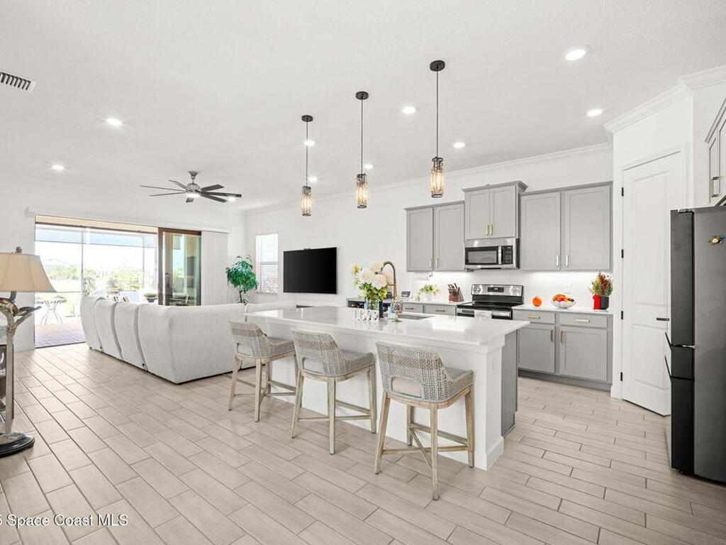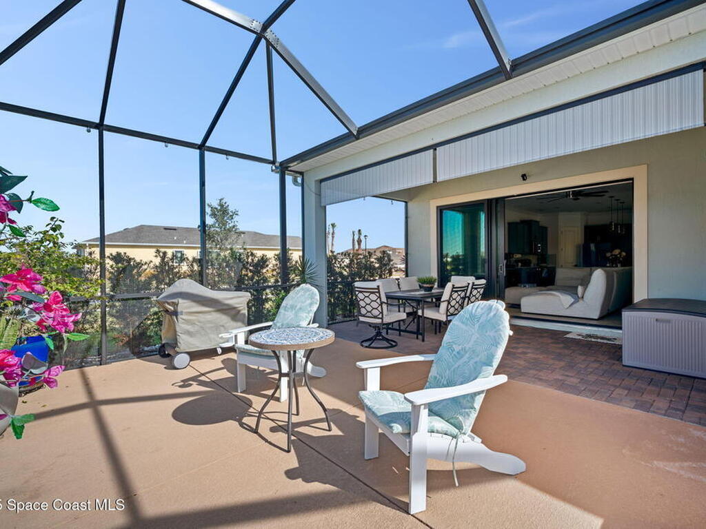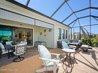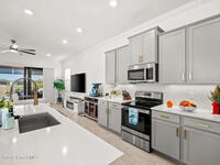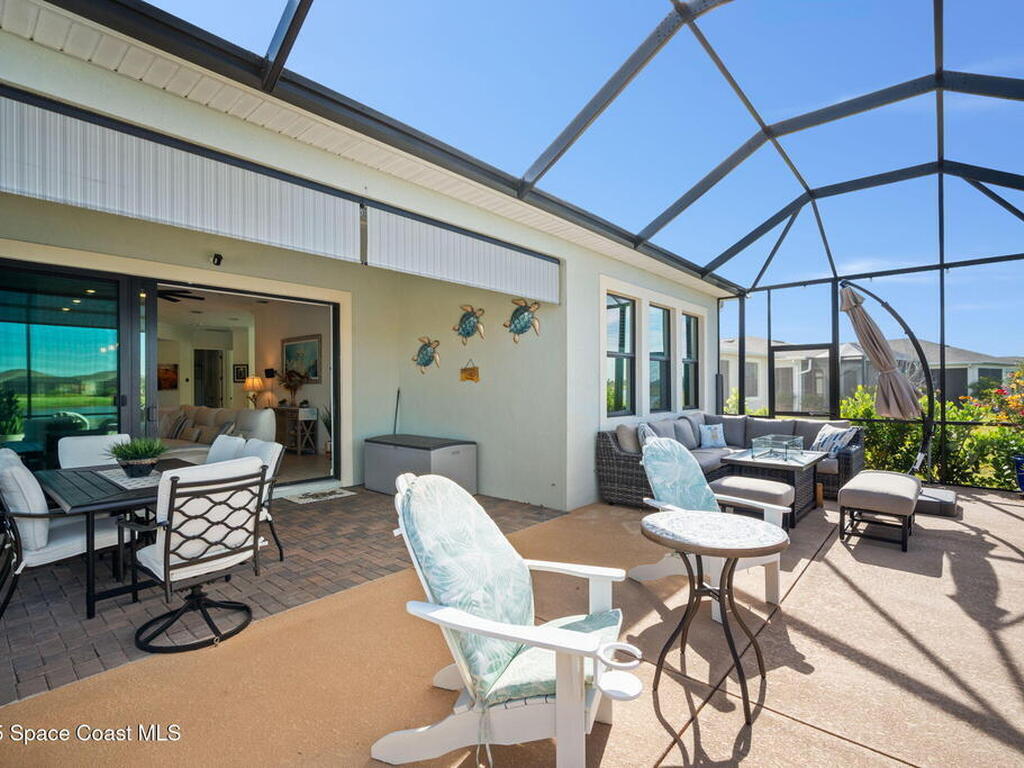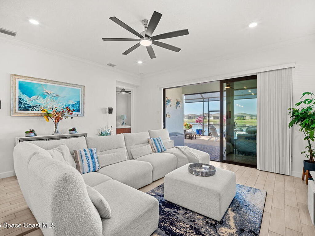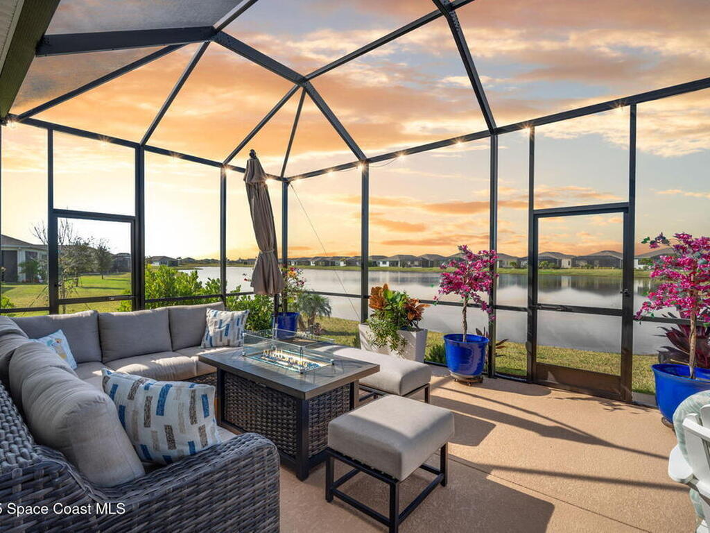 This gorgeous 2-bedroom, 2-bath waterfront home with a versatile flex space sits on a premium corner lot and shows like a model--ready for its new owners. Located in the highly desirable, gated, resort-style 55+ community of Bridgewater at Viera, this impeccably maintained residence was built in 2023 and offers 1, 876 square feet of thoughtfully designed living space.The screened-in lanai provides expansive water views from every angle, making it the perfect place to enjoy morning coffee or unwind while taking in breathtaking sunset views. Designed for both comfort and entertaining, the home features an impressive array of upgrades, including tile flooring throughout, upgraded appliances, quartz countertops, and a glass tile backsplash.The spacious kitchen boasts a large center island overlooking a separate dining alcove and flows seamlessly into the open living room, highlighted by triple glass sliders that lead to the stunning lanai.