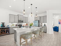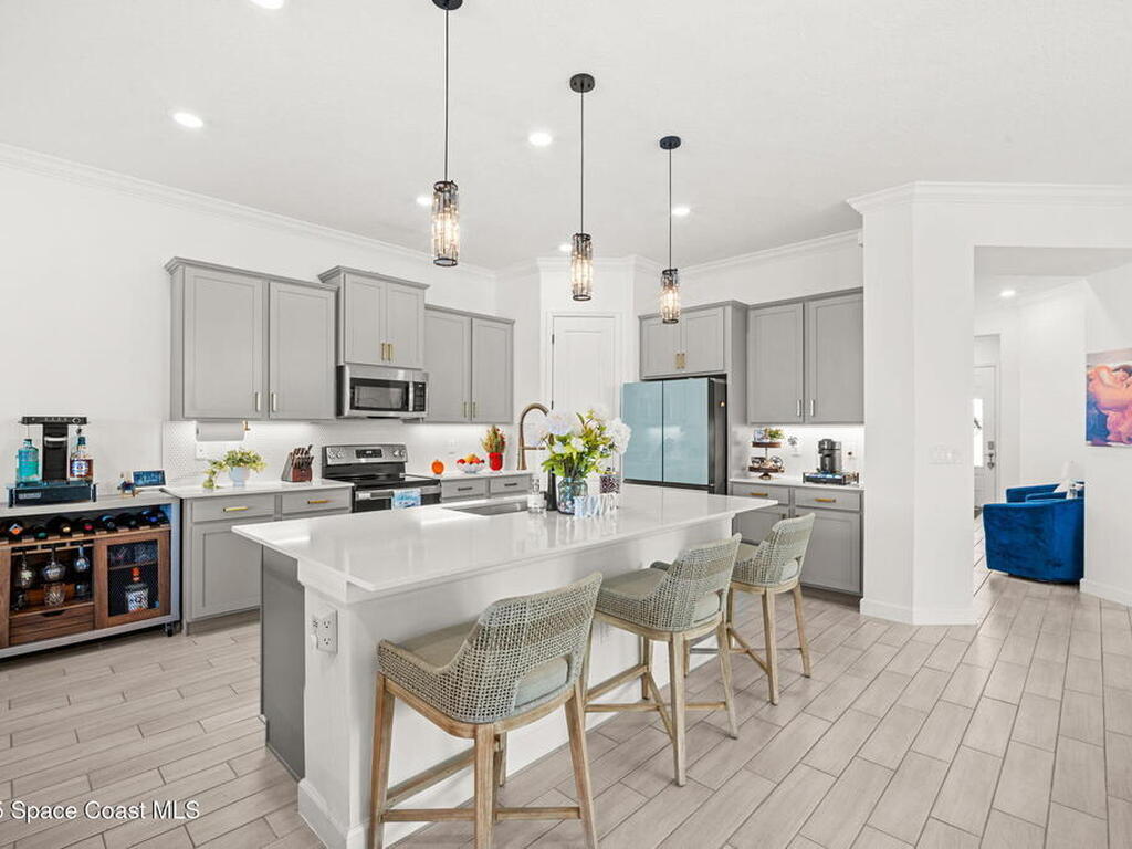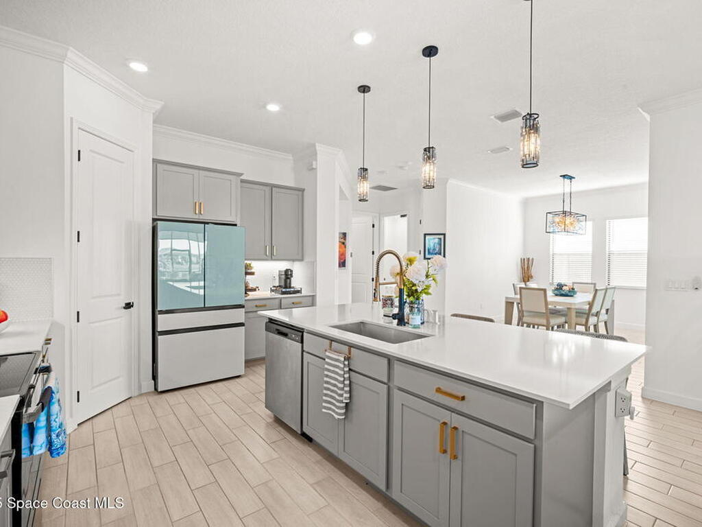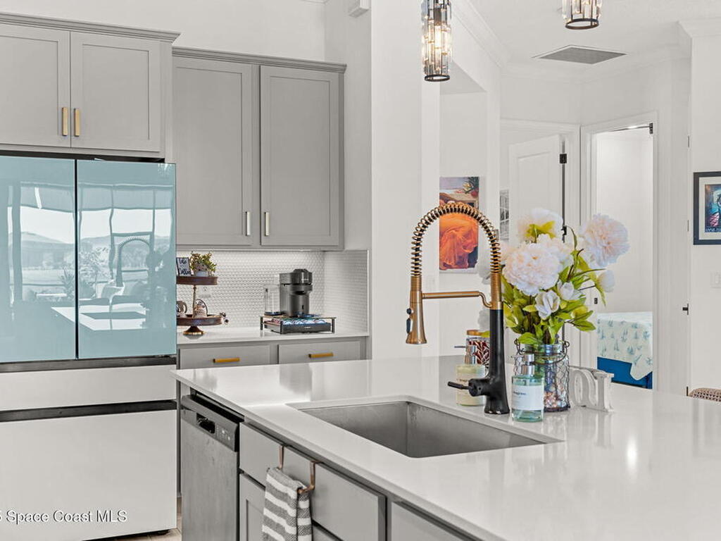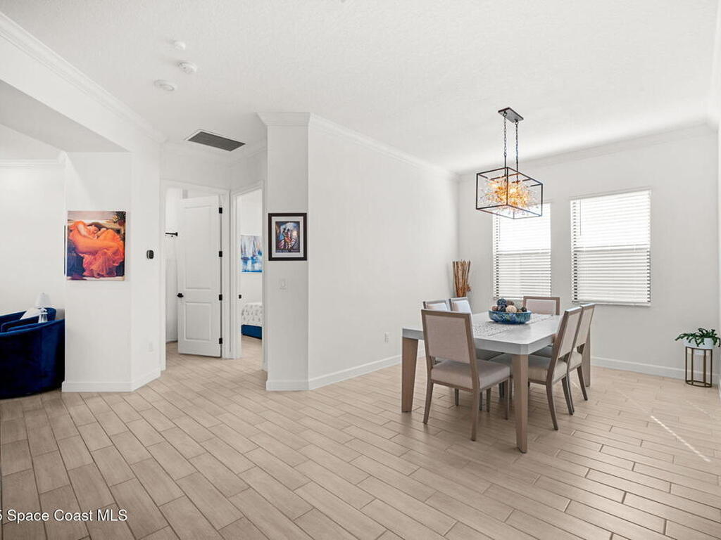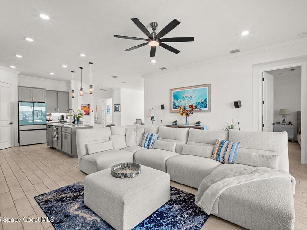 This gorgeous 2-bedroom, 2-bath waterfront home with a versatile flex space sits on a premium corner lot and shows like a model--ready for its new owners. Located in the highly desirable, gated, resort-style 55+ community of Bridgewater at Viera, this impeccably maintained residence was built in 2023 and offers 1, 876 square feet of thoughtfully designed living space.The screened-in lanai provides expansive water views from every angle, making it the perfect place to enjoy morning coffee or unwind while taking in breathtaking sunset views. Designed for both comfort and entertaining, the home features an impressive array of upgrades, including tile flooring throughout, upgraded appliances, quartz countertops, and a glass tile backsplash.The spacious kitchen boasts a large center island overlooking a separate dining alcove and flows seamlessly into the open living room, highlighted by triple glass sliders that lead to the stunning lanai.
