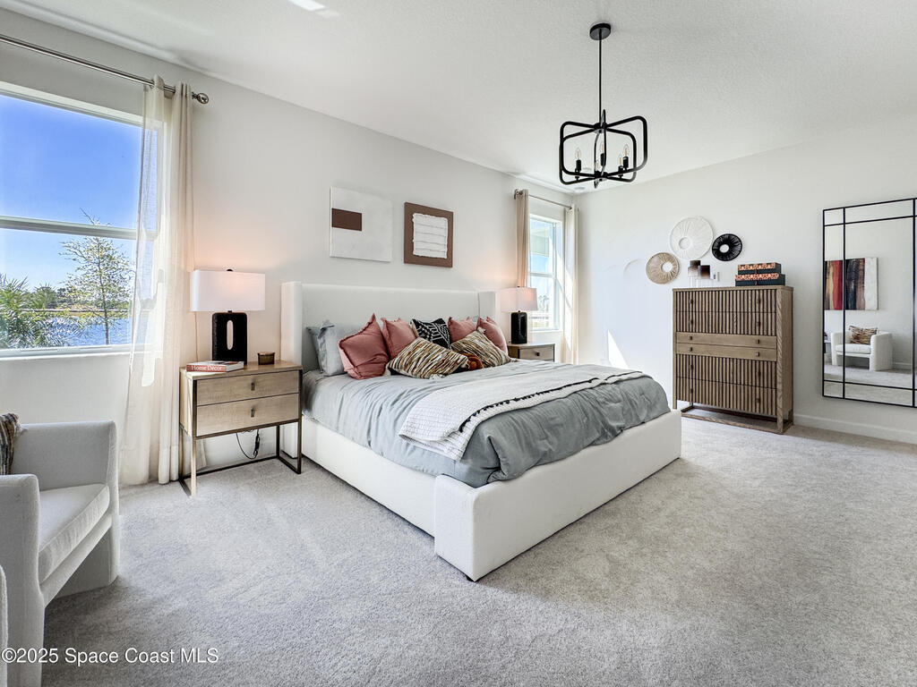 Welcome to Riverwood at Everlands! ~ WATER LOT!! This two-story Raleigh Model home features a smart layout that offers endless possibilities. A versatile den attached to the foyer by the front door while down the hall is an open concept living area with access to a LARGE trussed covered patio. The Owner's Suite is tucked into a corner at the first floor with a private bathroom and closet. While upstairs four bedrooms center around a loft. Home features IMPACT WINDOWS, gutters, quartz countertops, tile in all main level living areas, and more. Pictures are for illustrative purposes only.
