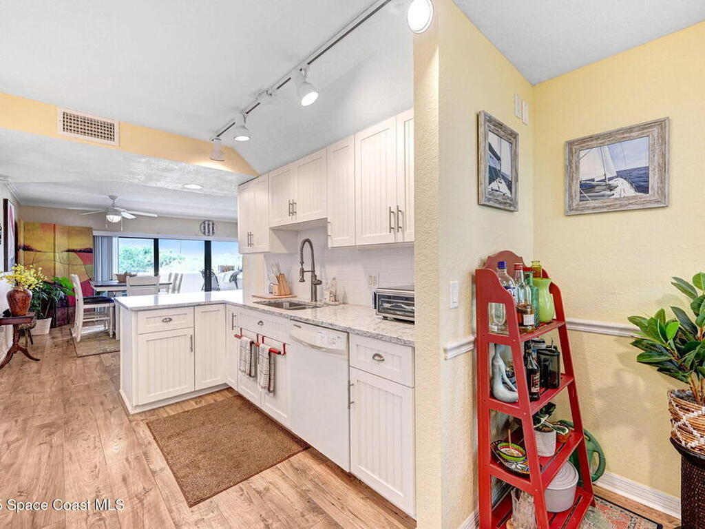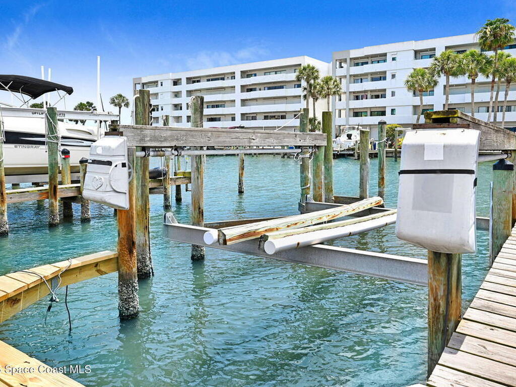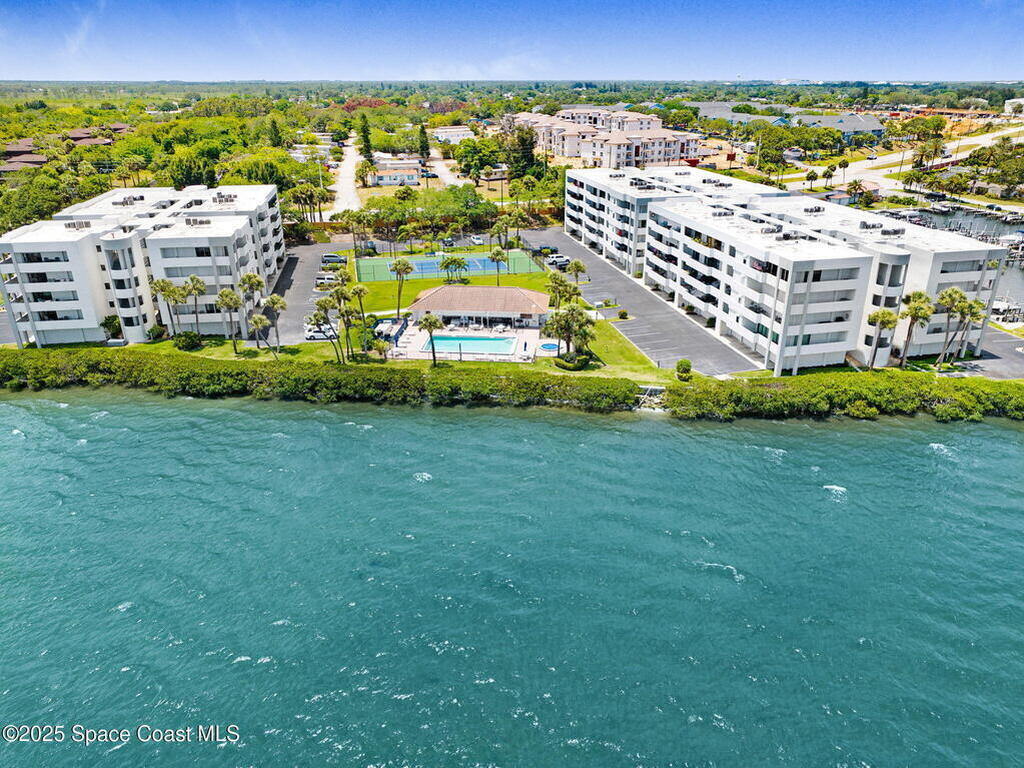 DEEDED Boat Slip w/unit in this fabulous waterfront community with Private Marina. The amenities are amazing! Salt water Heated Pool and Hot Tub. Pool is chilled in the summer. Beautiful clubhouse with full kitchen, restrooms, showers and sauna. Fitness room overlooking private marina. Tennis and pickleball courts. Fishing pier & park benches to watch incredible sunrises and wildlife. Enter Atrium with lush foliage to access elevator or stairs. Unit is turnkey w/beautiful furnishings, open floor plan & huge private balcony Oversized sliders from living/dining area & two bedrooms w/direct access to balcony. Split floor plan! MBR w/private bathroom suite & custom closets. Guest bath w/tub & shower. Beautiful kitchen with custom cabinetry and granite counters. Lots of closets & huge private storage area in garage. Additional assigned parking & plenty of guest parking available. Boat slip can accommodate 32 ft vessel. Electric & water at docks. Lease/purchase or rent/option available!